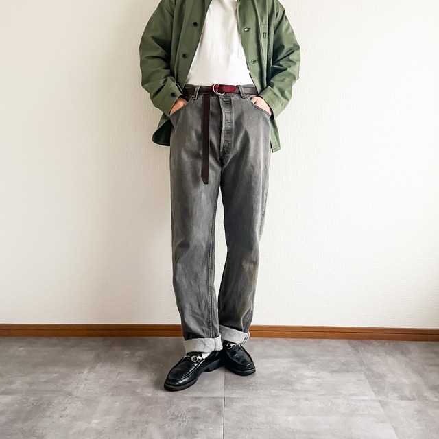 サイズ 表記:表記W38 L34 実寸W37 L32.5 着用感:L相当 ※着用感は当店の独自の基準によるサイズ感です。 実寸:cm(多少の誤差がございます) ウエスト:47×2 股上:30 股下:83 裾幅:20.5 わたり幅:32 商品詳細 年代 :1990's 生産国 :USA製 ブランド:リーバイス 素材 :コットン 色 :先染めブラック 特徴 :1990's Levi'sのUSA製501ブラックデニム。 年々アメリカでもかなり見つかりづらくなってきているリーバイスのUSA製のブラックデニムですが、その中でも更に希少な501-0658の先染めブラック。 近年古着市場で話題になっているアイテムの一つでしょう。 先染めブラックが生産されたのは1980年代から1990年代前半の非常に短い期間と言われており、その短い生産期間から希少な存在として知られています。 先染めブラックは経年と共に表糸と裏糸の表情が現れキレイにフェードしたグレーへと色落ちしていきます。 まさにこの色落ちこそが先染めブラックデニムの最大の魅力でしょう。 先染めブラックならでは色落ちしたグレー系の色味が最高ですね。 少し大きめですがベルトで絞ったシルエットも良く、ジャストよりもこちらの方が気分な方も多いのではないでしょうか。 今後ますます注目が上がり間違いなく枯渇、高騰していくアイテムですのでお見逃しなく。 ※ユニセックスで着ていただけます。 着用者170cm相当 コンディション こちらの商品は【B~C】ランクです。 ※※古着故の多少の着用感や画像のような汚れやリペア、スレがございます。古着に理解のない方のご購入はお控えください。 【S】ほぼ新品。美USEDの商品。 【A】若干の使用感はあるが、状態の良いUSED。 【B】使用感はあるが、目立つダメージや大きな汚れはない。 【C】使用感と部分的に目立つダメージや汚れあり。 【D】過度の使用感、目立つダメージや汚れあり。使用は可能。 【N】新品、展示品、デッドストックなど。 ご注意事項 掲載商品は実店舗でも販売しているため、 既に販売済みである場合やご注文が重複する場合があります。 その場合は誠に申し訳ございませんが、ご注文時刻が早い方を優先させていただきますのでご了承ください。 またご注文後のクレーム、返品対応は出来かねますのでコンディション、サイズ等気になる点がございましたら必ずお問い合わせの上ご注文下さいませ。