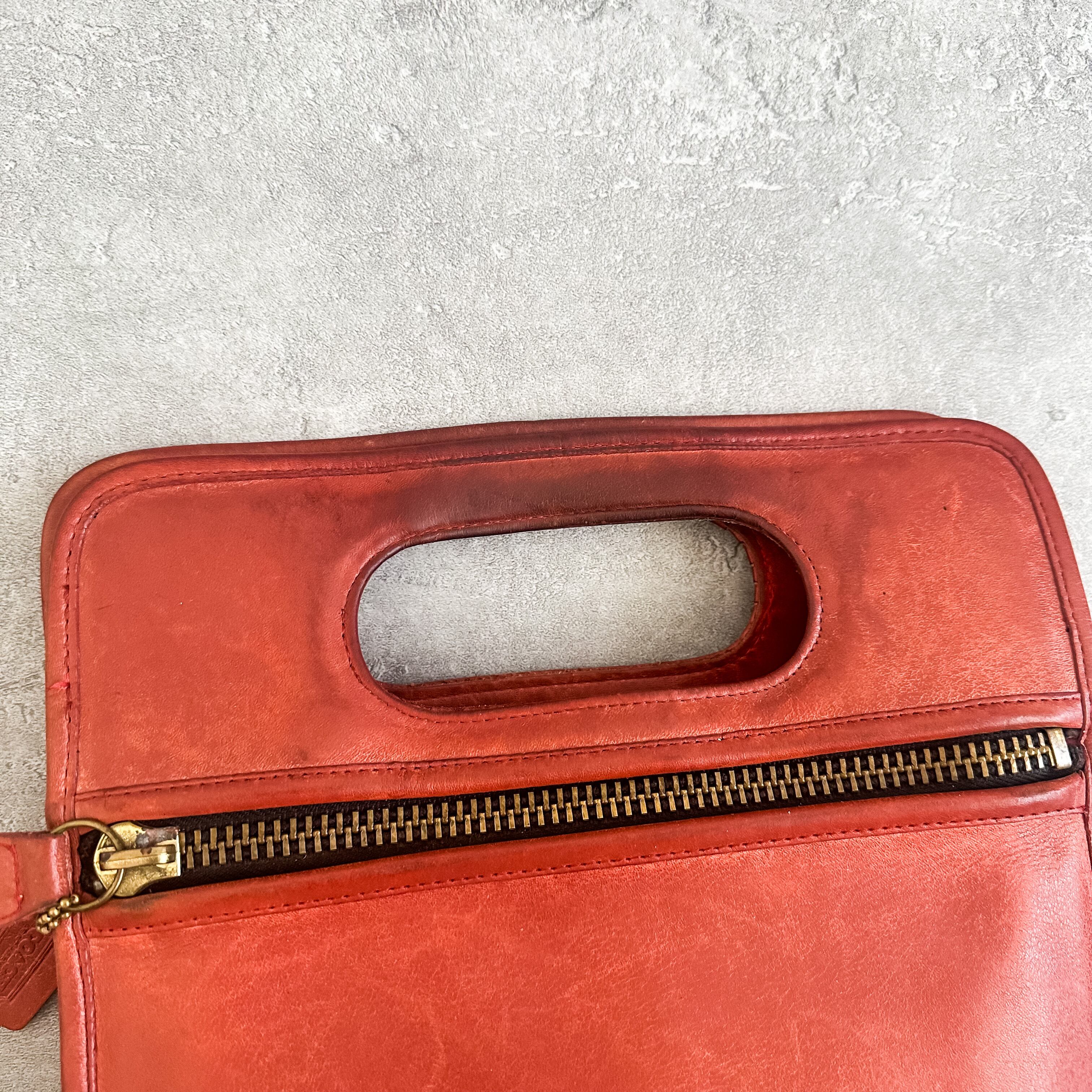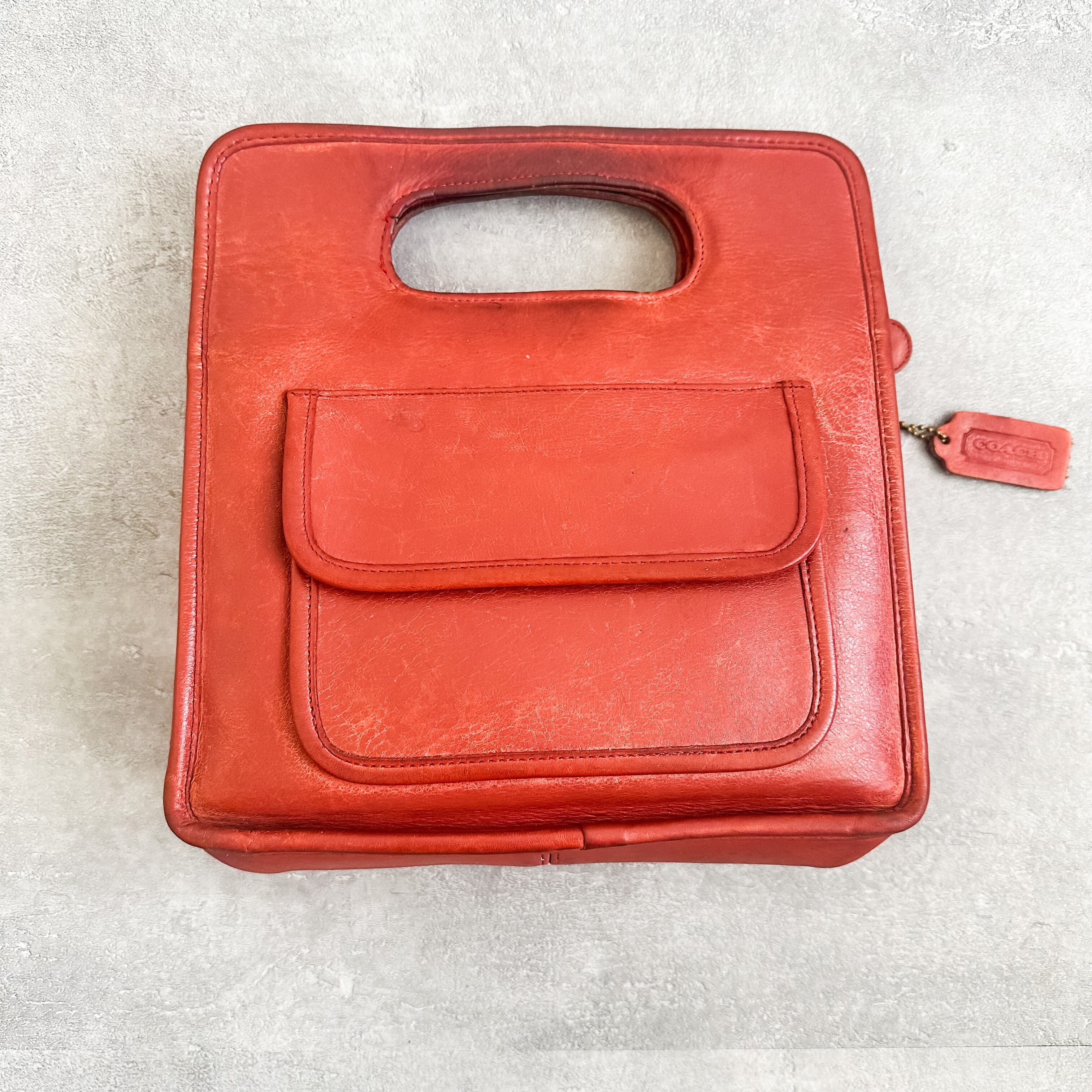 1980's~1990's "old coach" red flap pocket leather hand bag