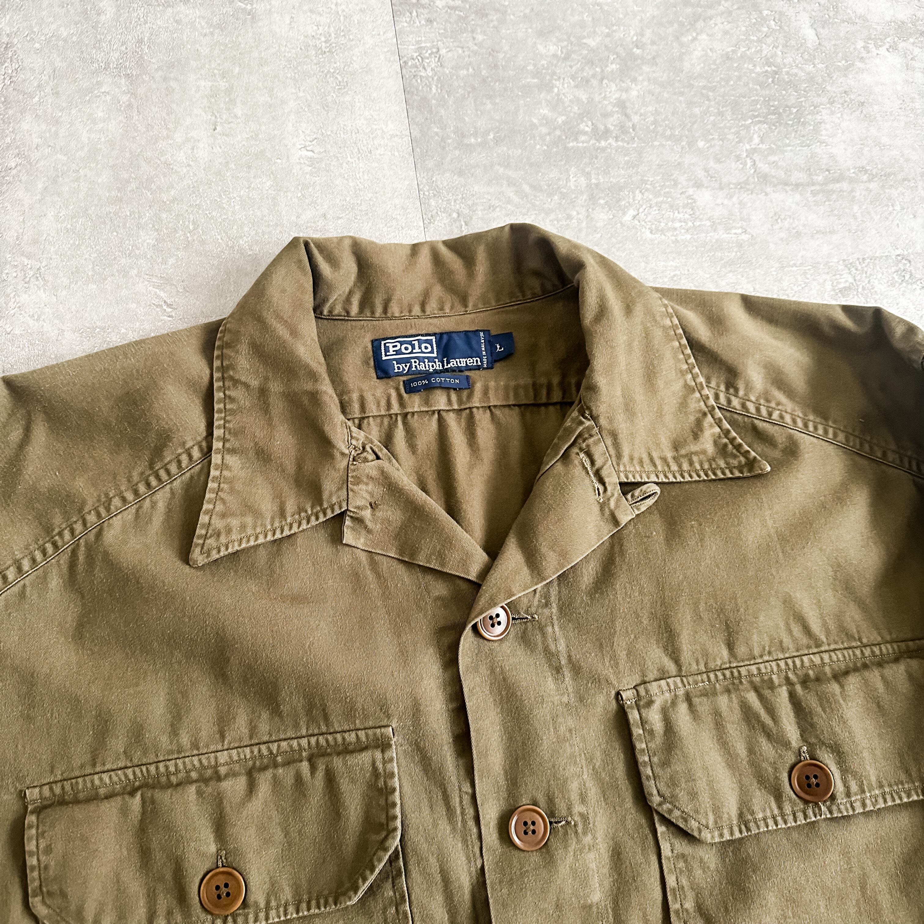1990's "Polo Ralph Lauren" military style open collar cotton shirt