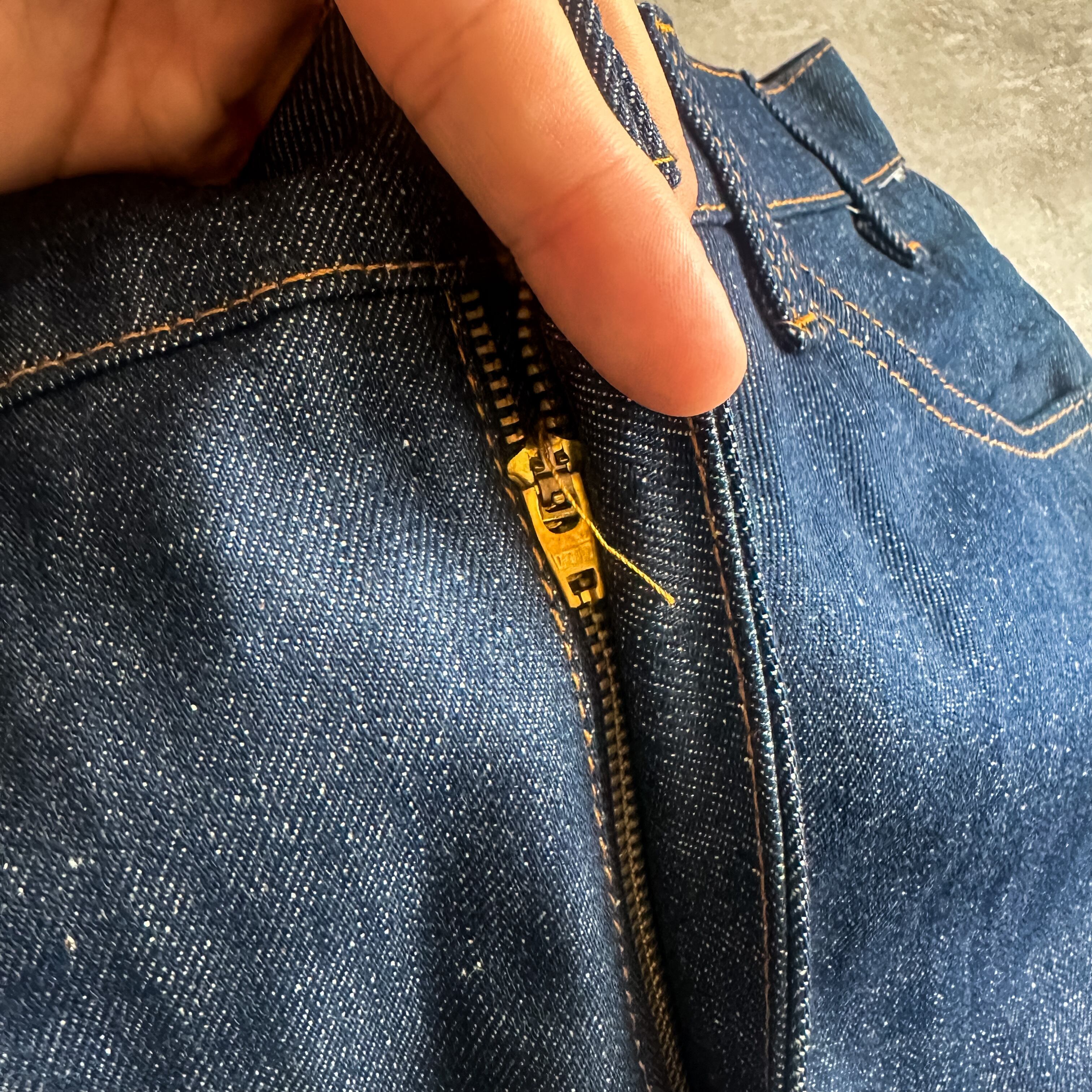 ※※デッドストックですが保管上での細かな汚れ、ほつれなどがある場合がございます。紙パッチに割れがございます。恐らくオリジナルの裾ですがチェーンではなくシングルステッチになります。古着やdead stockに理解のない方のご購入はお控えください。