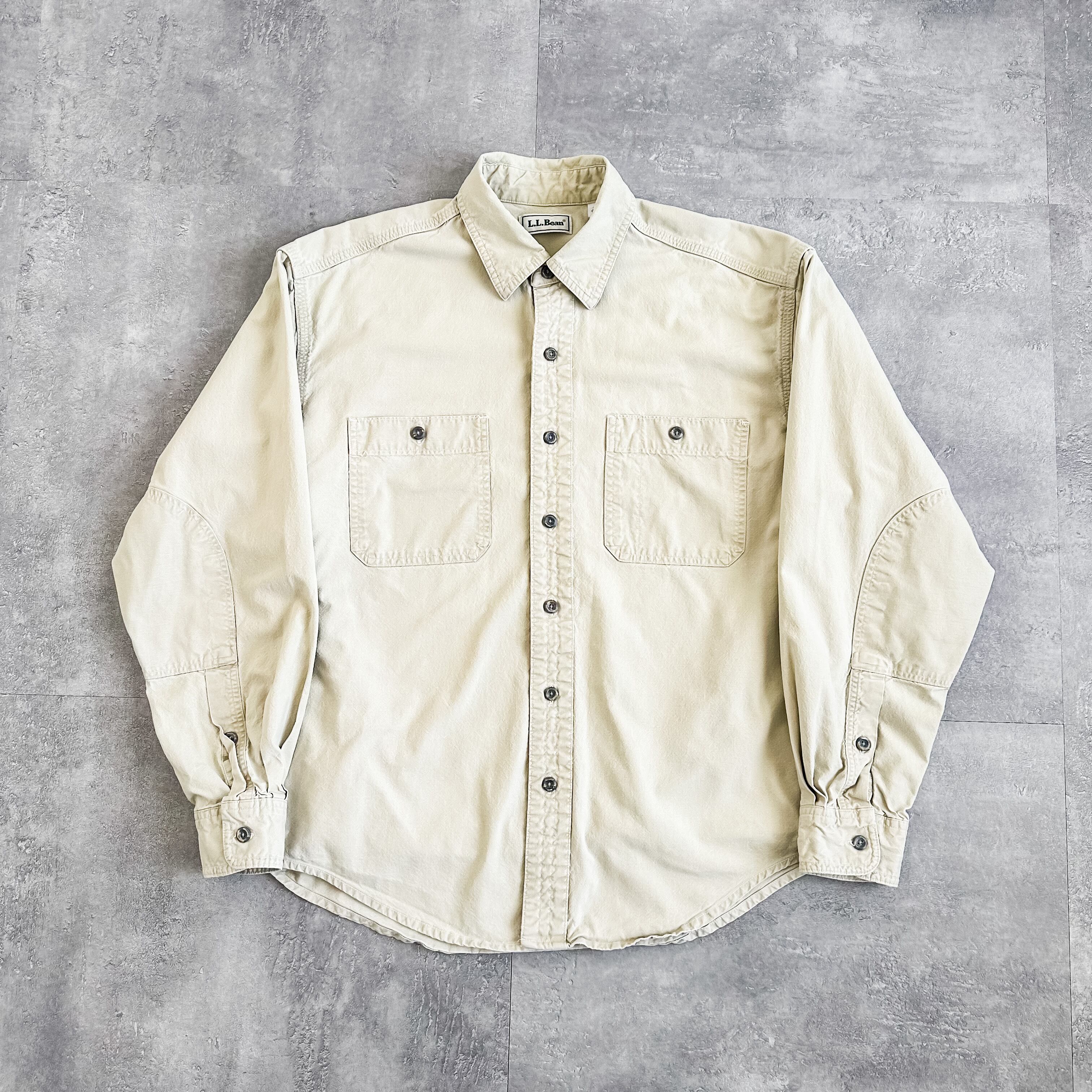 1990's "L.L.Bean" light beige elbow patch cotton shirt made in Canada