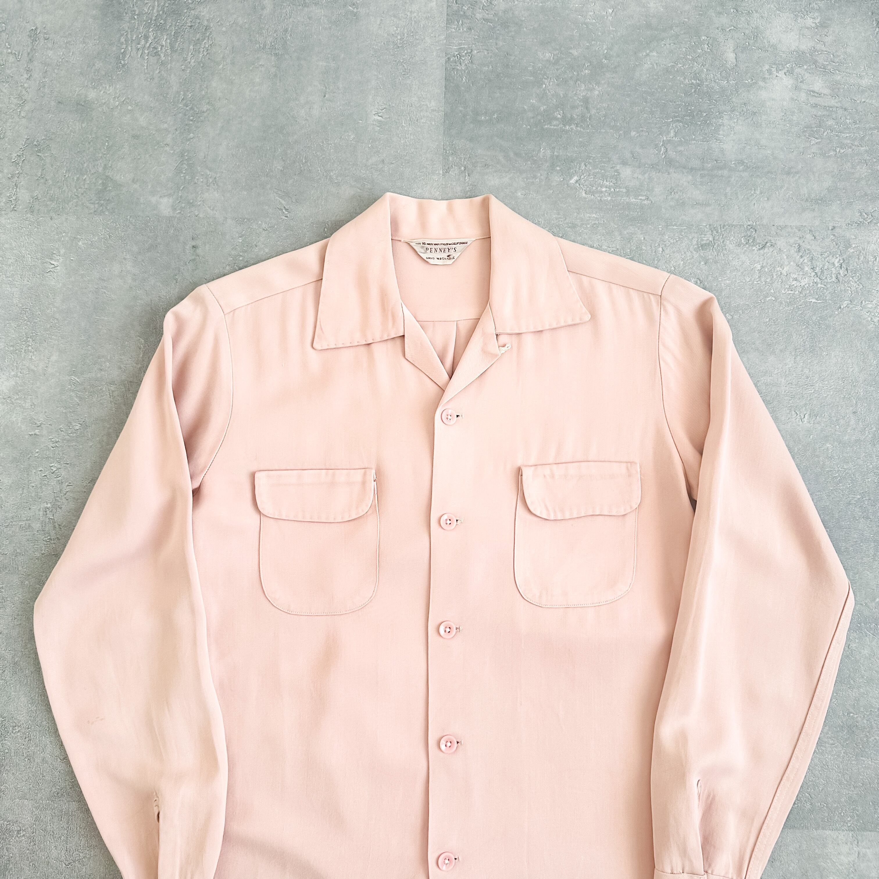Vintage 1950's "PENNEY'S" pink open collar rayon gabardine shirt