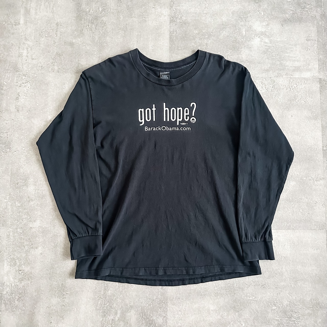 1990's~ "Barack Obama" "got hope?" print cotton L/S tee made in USA