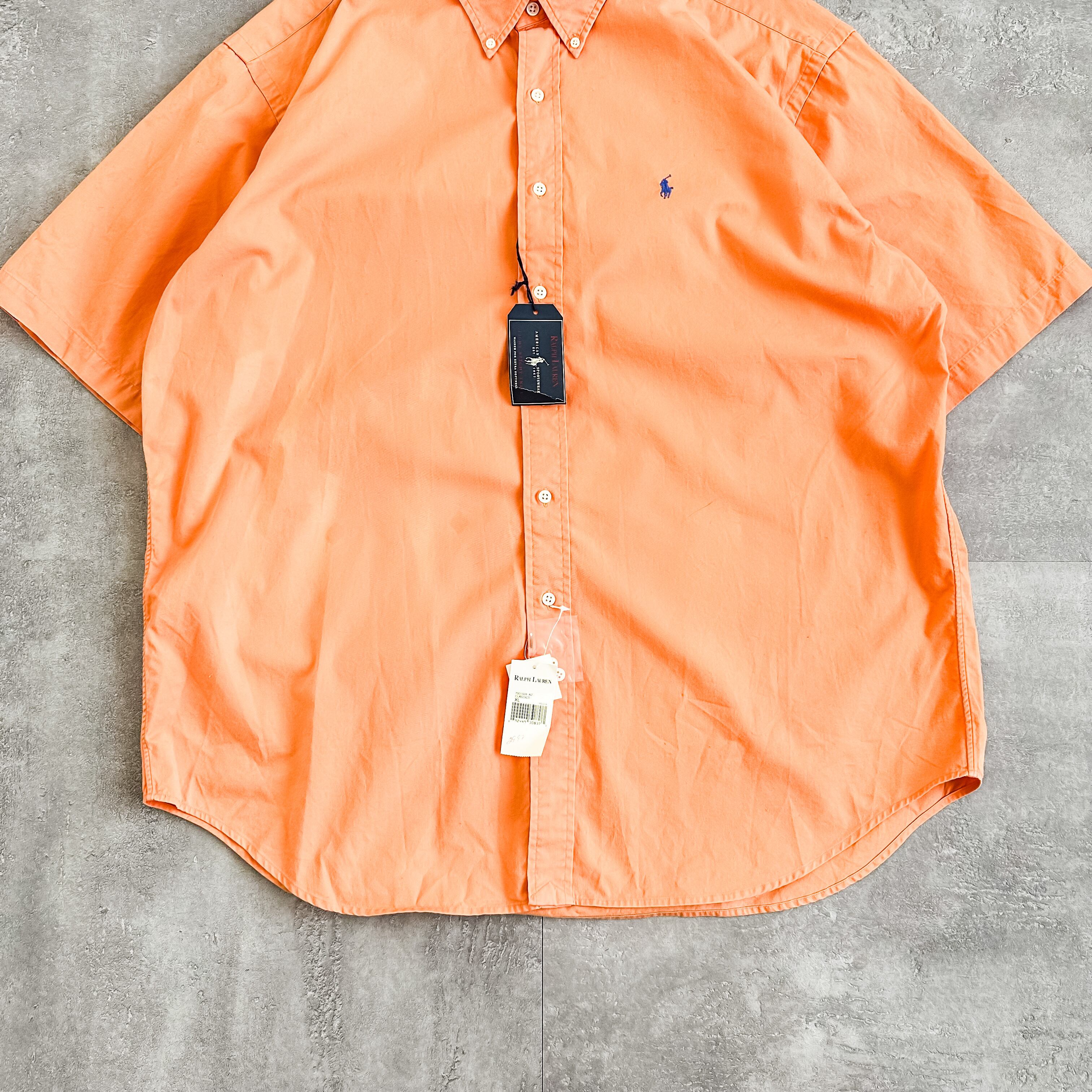 Dead stock! 1990's "Ralph Lauren" BLAKE orange cotton s/s shirt