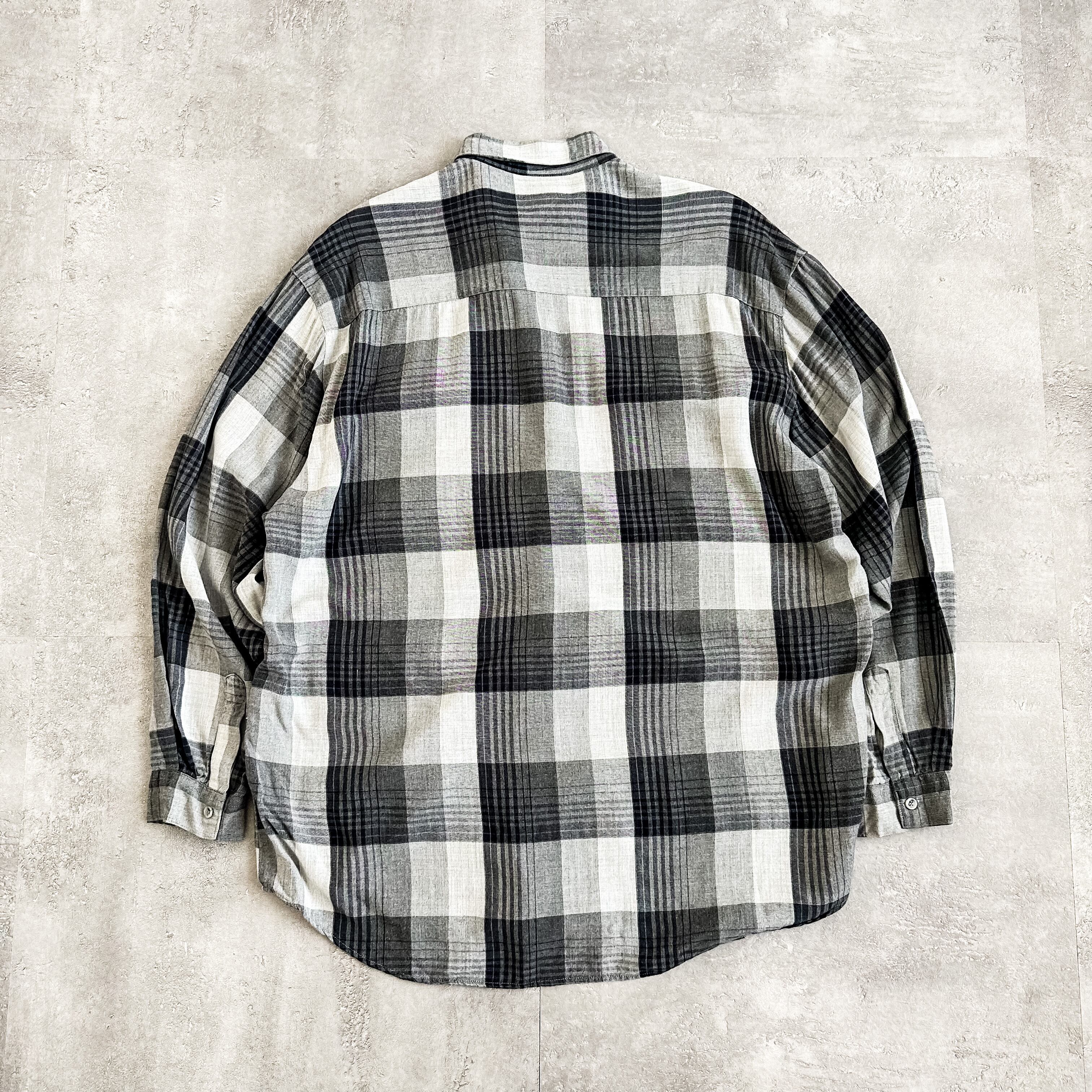 ヴィンテージと遜色ない落ち感のある肌触りの素晴らしいレーヨンファブリックに、グレーベースの配色の良いチェックパターン。