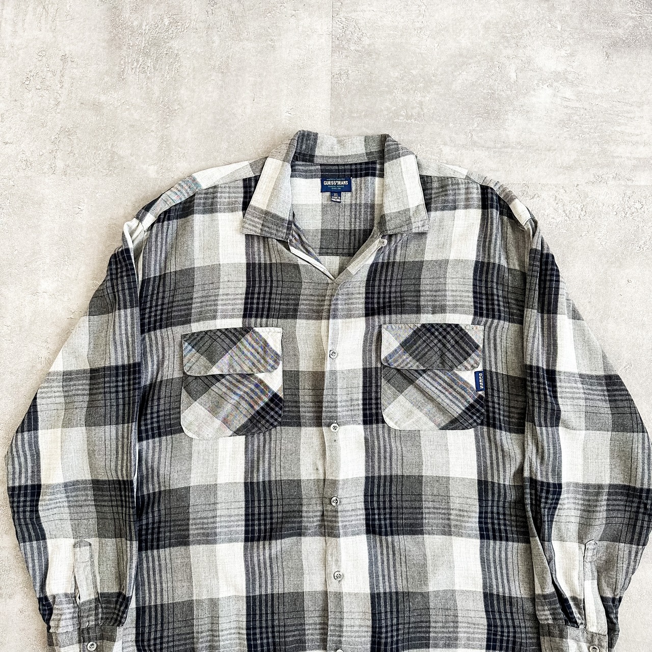 1990's~ "GUESS" plaid pattern open collar rayon shirt
