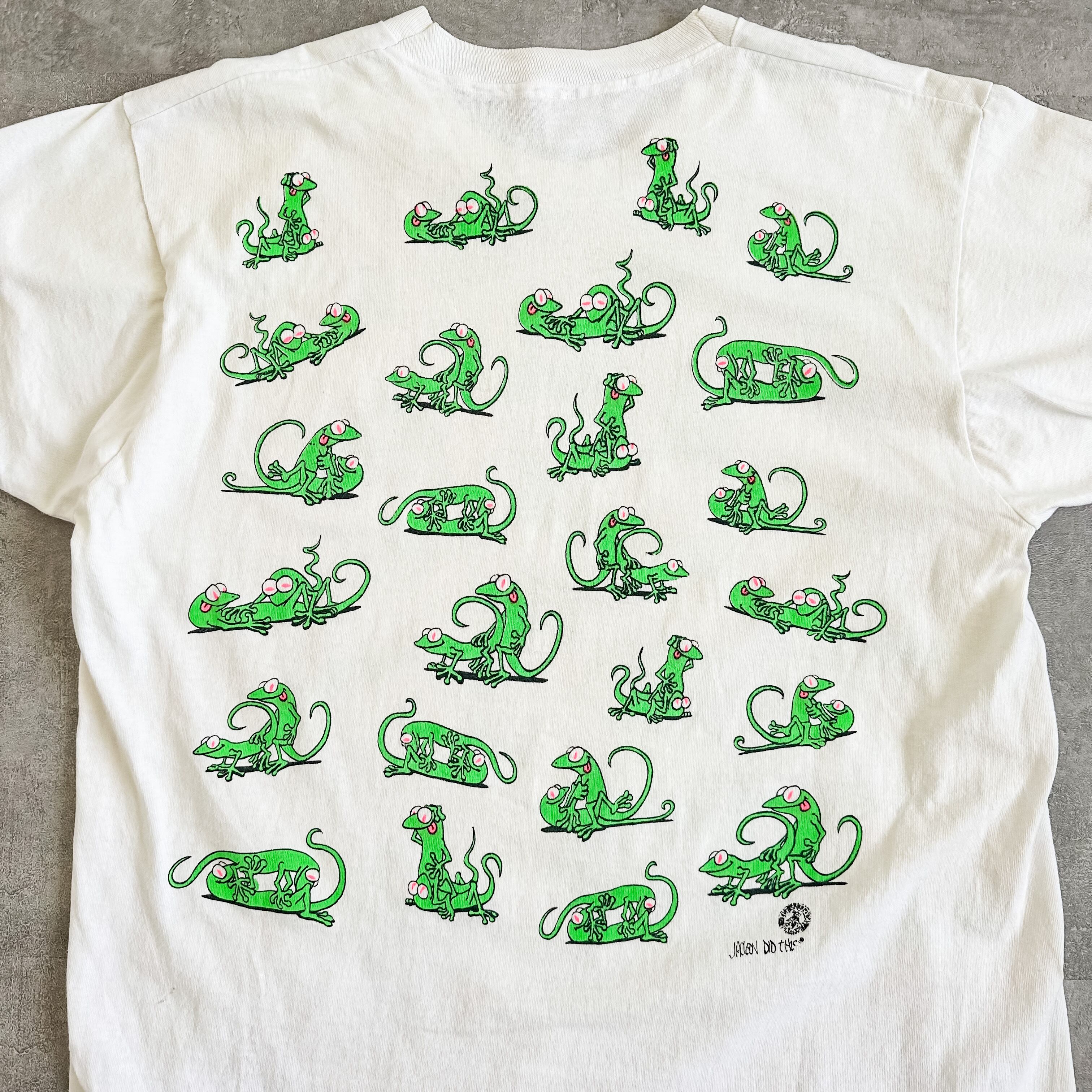 エロTeeの中でも比較的ポップで着やすいトカゲの四十八手のプリントがされたグッドな一枚です。