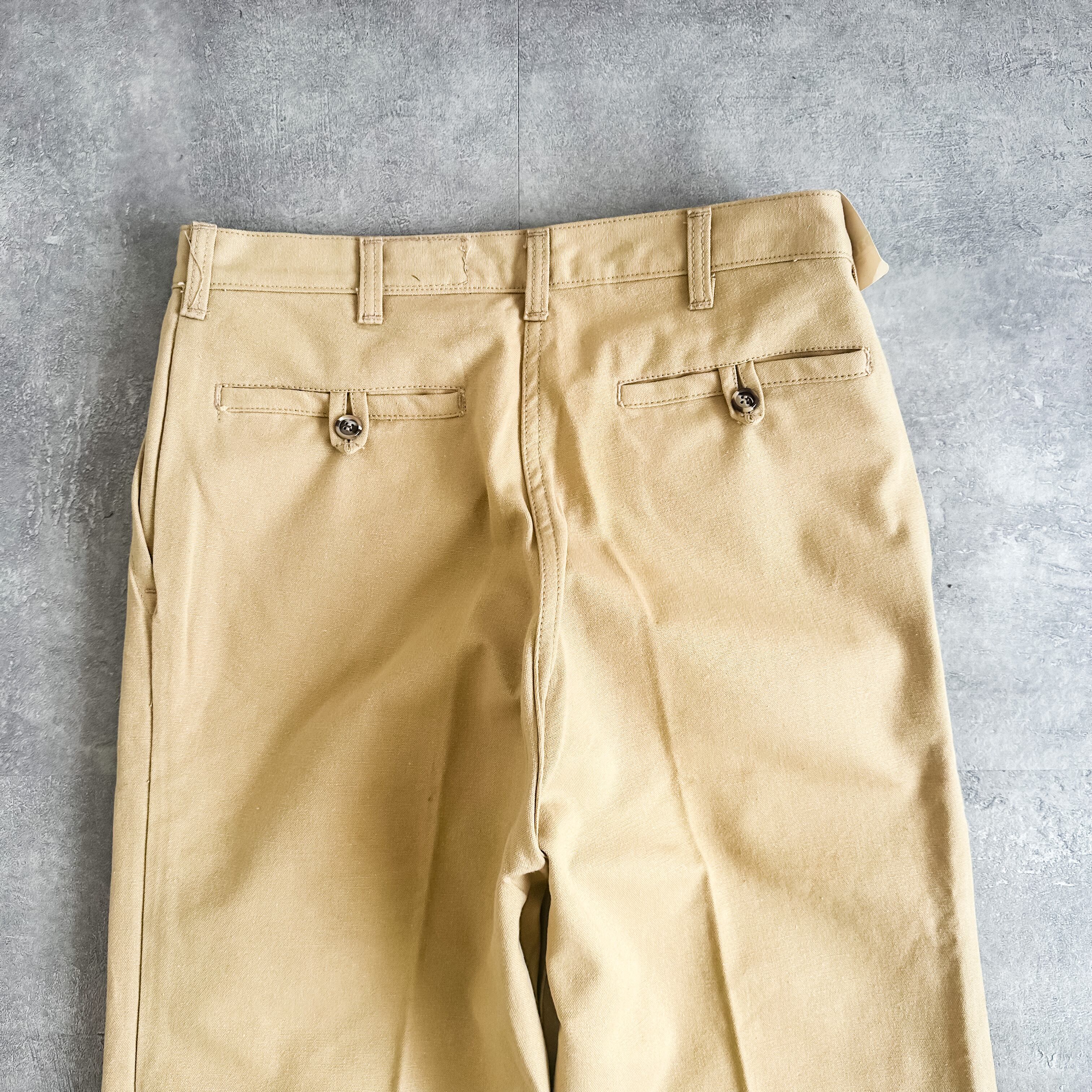 ※※フラッシャー付きのデッドストックです。保管上での画像のような汚れがございます。裾未処理ですので自分のレングスに合わせて裾上げしてもよいかと。古着に理解のない方のご購入はお控えください。