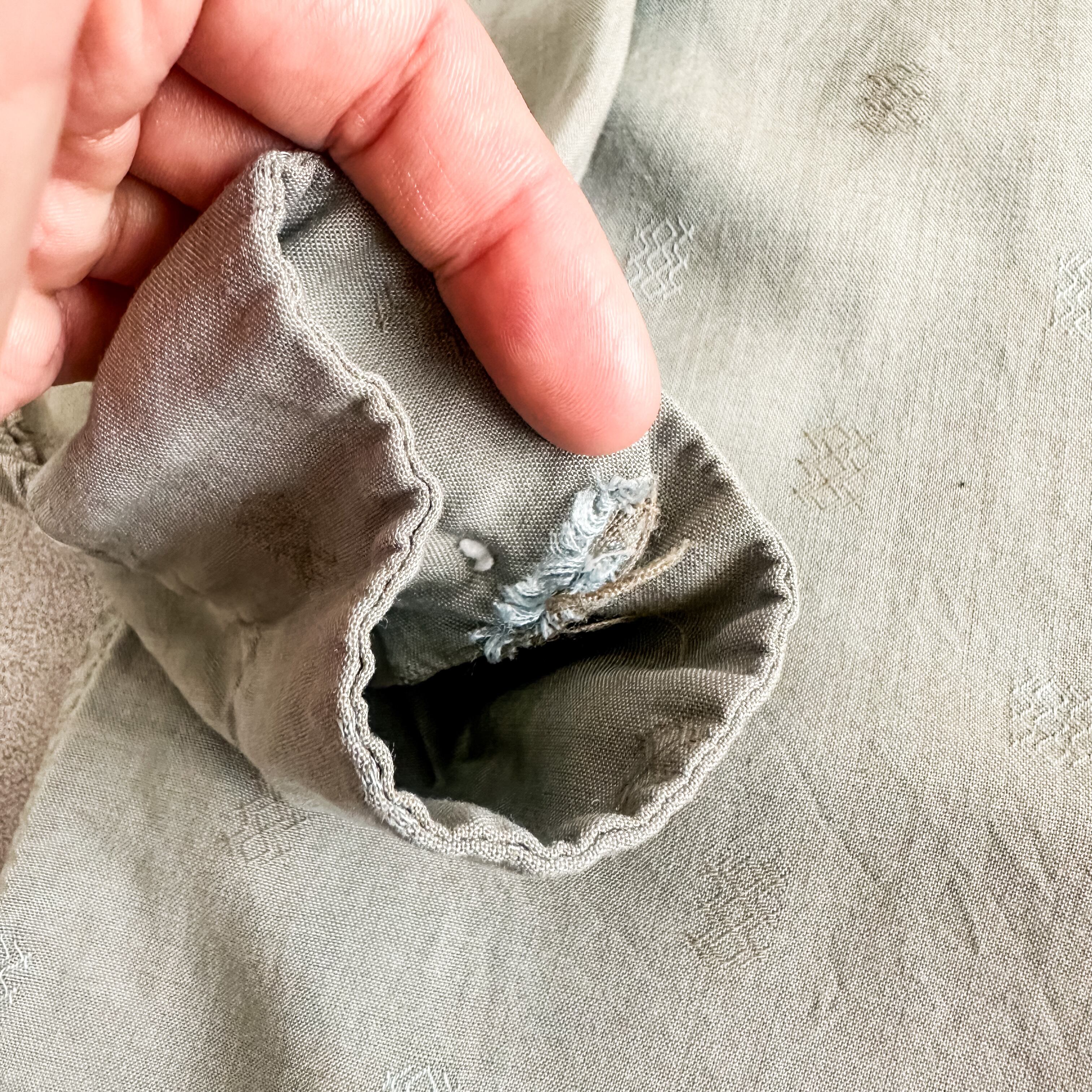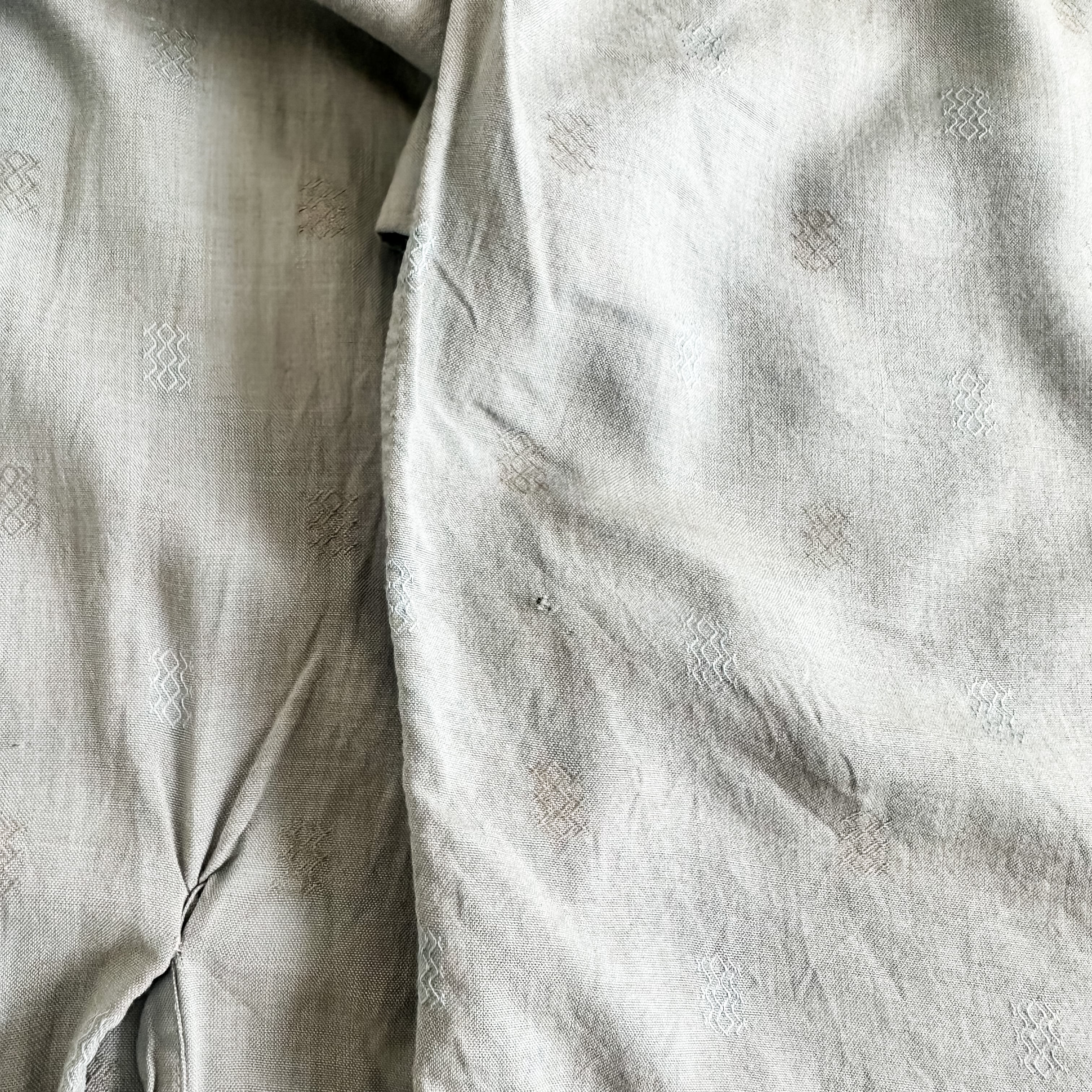 とろみがあり美しいドレープ感の出るレーヨンファブリックに、少し灰みのあるライトグリーン系の絶妙なカラーリング。