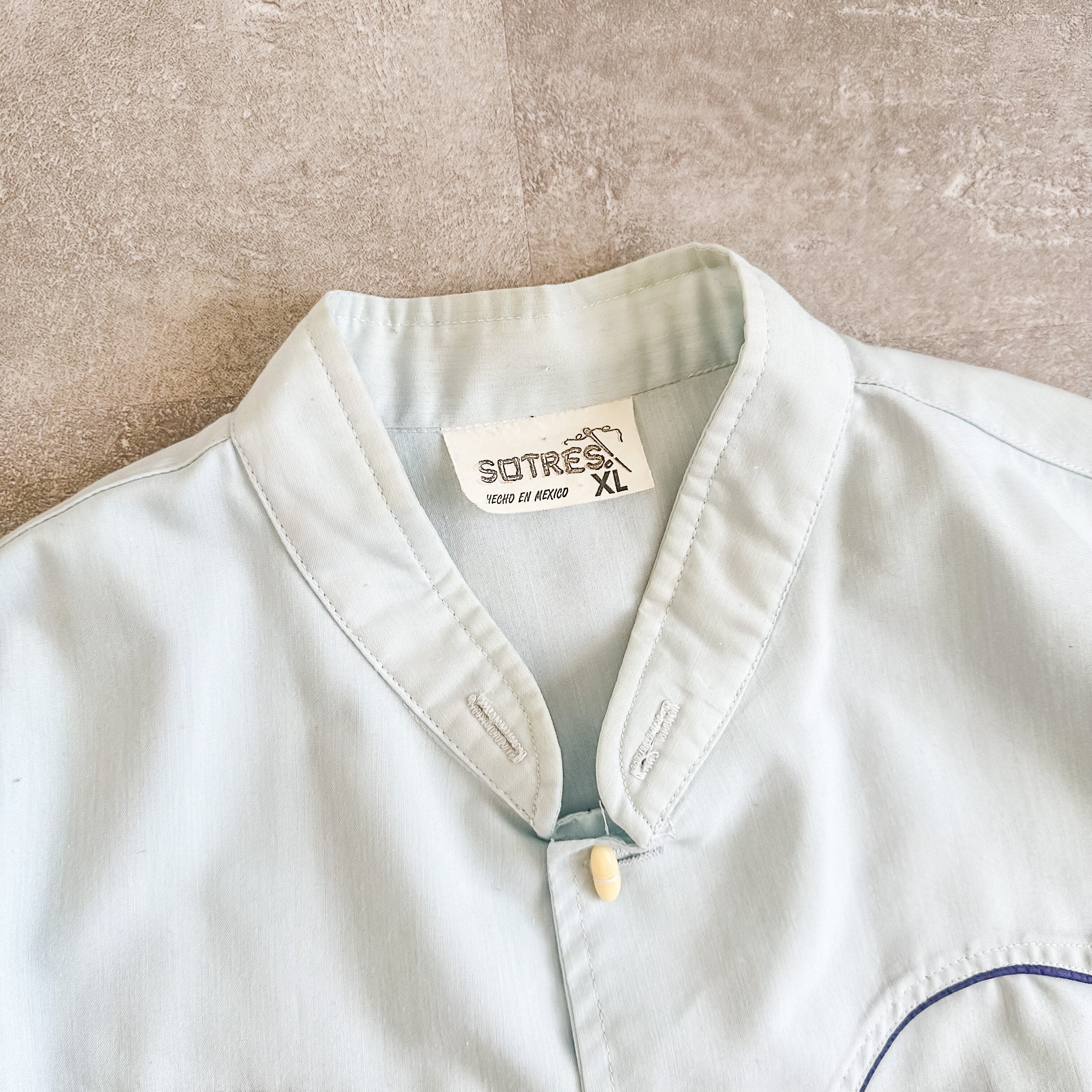 Vintage 1970's~ light blue stand collar western shirt