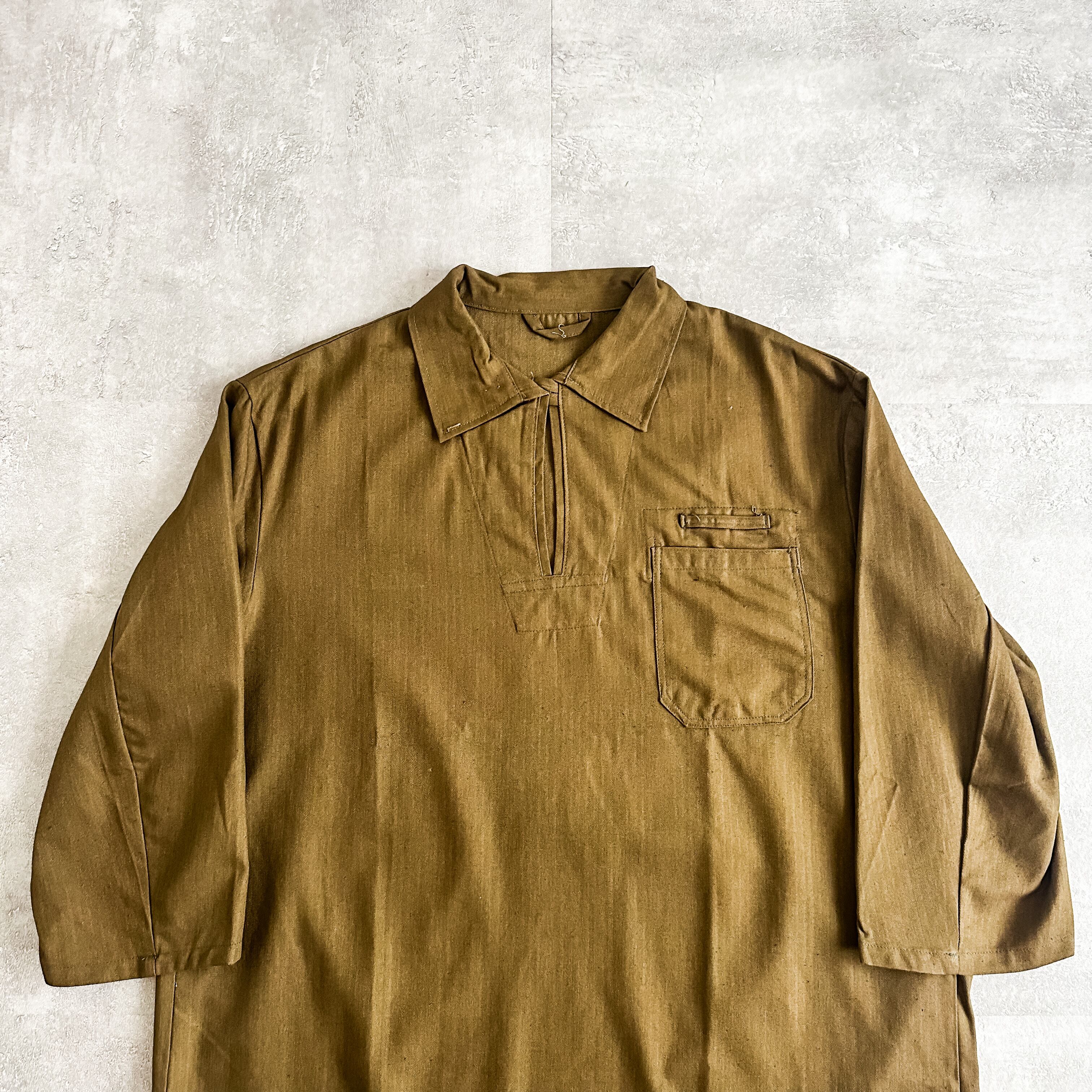 特徴 :チェコ軍の実物放出のヘリンボーンツイル素材のプルオーバーワークシャツ。