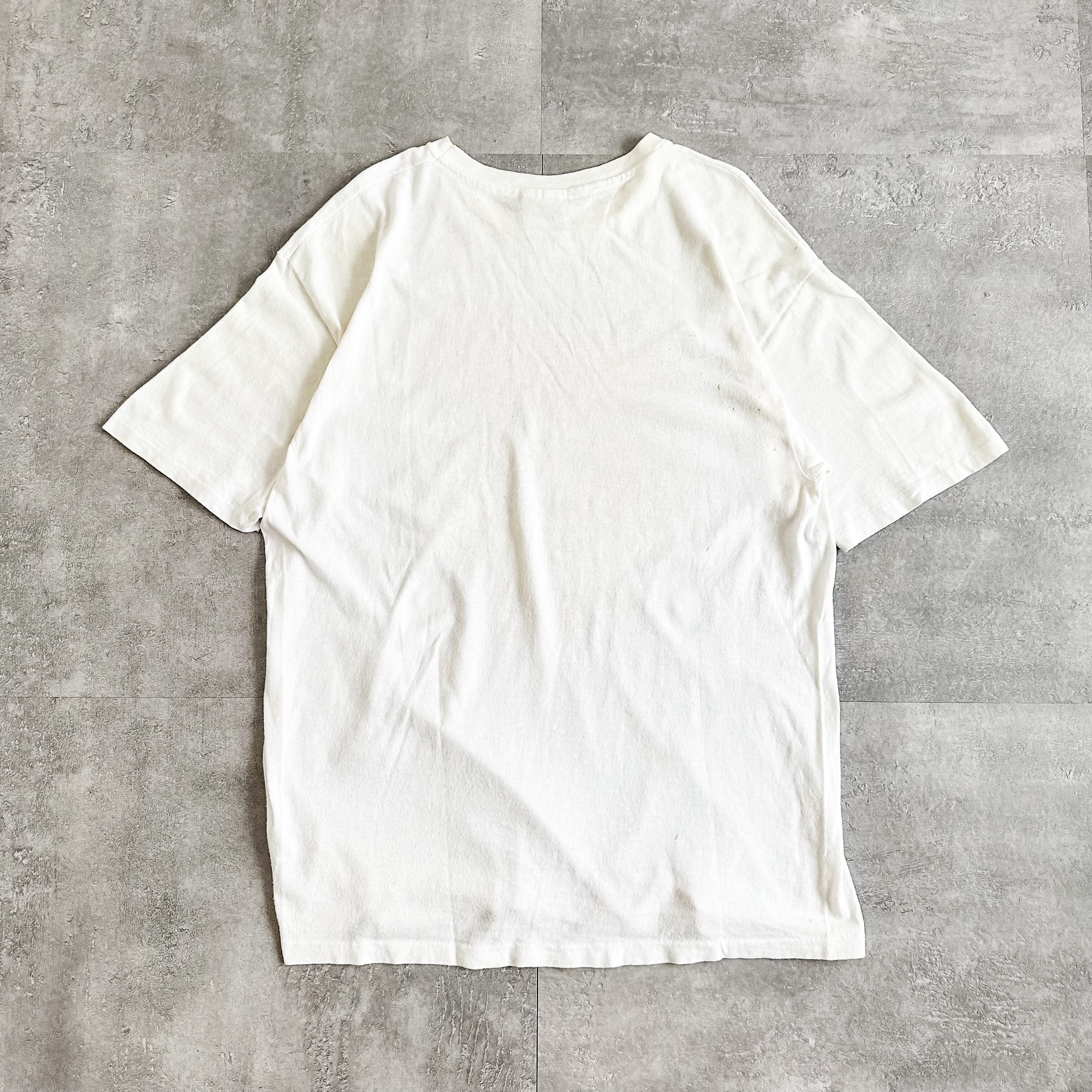 Hanesのオールコットンボディに袖、裾ともにシングルステッチ。