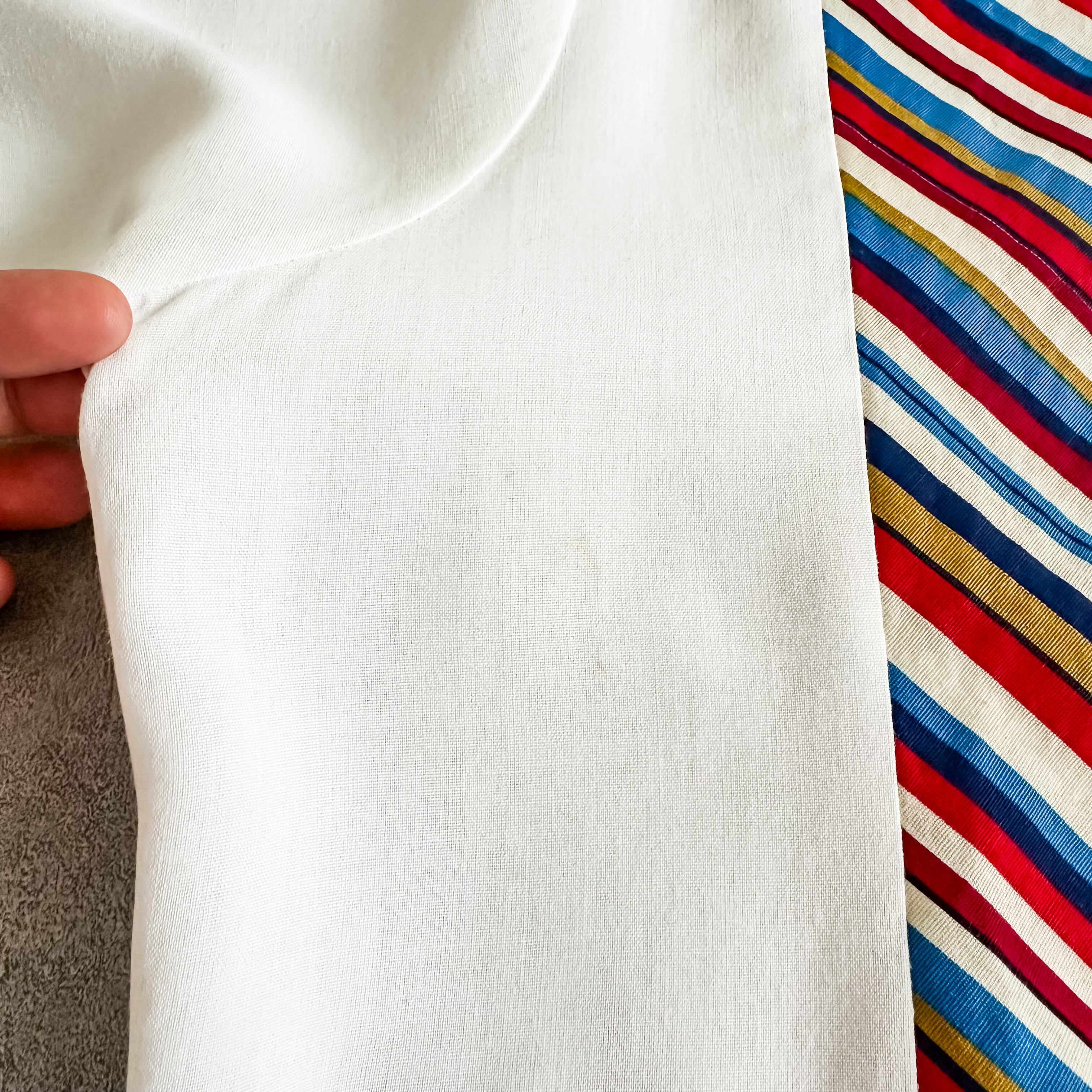 ホワイトカラーのボディーに、フロントには斜めのカラフルなストライプの切り替えになったかなり珍しいデザイン。