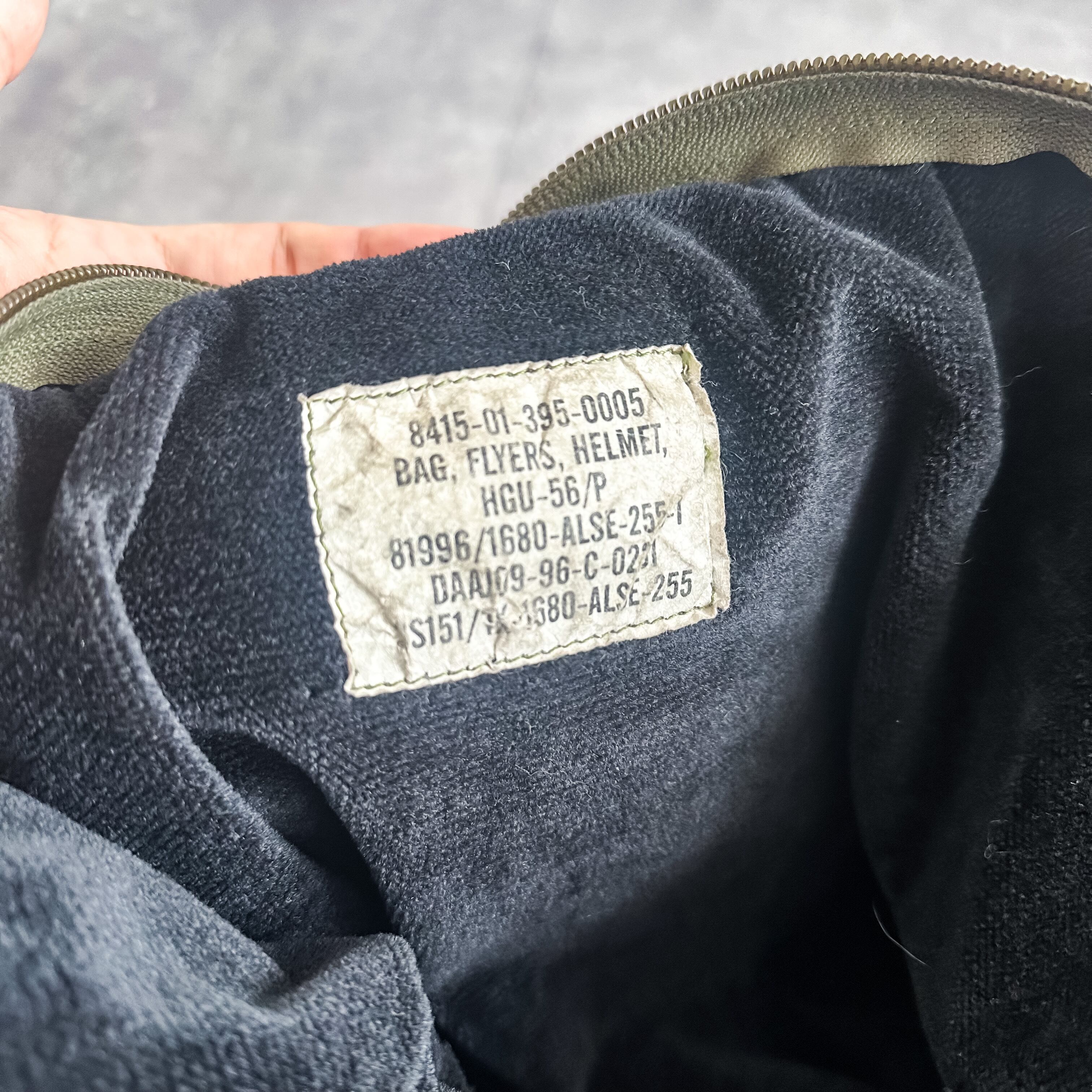 アメリカ陸軍、空軍、沿岸警備隊、海兵隊のコブラやブラックホーク、オスプレイ等のヘリコプターで使用される搭乗パイロット用ヘルメット「HGU-56/P」を収納するバッグになります。