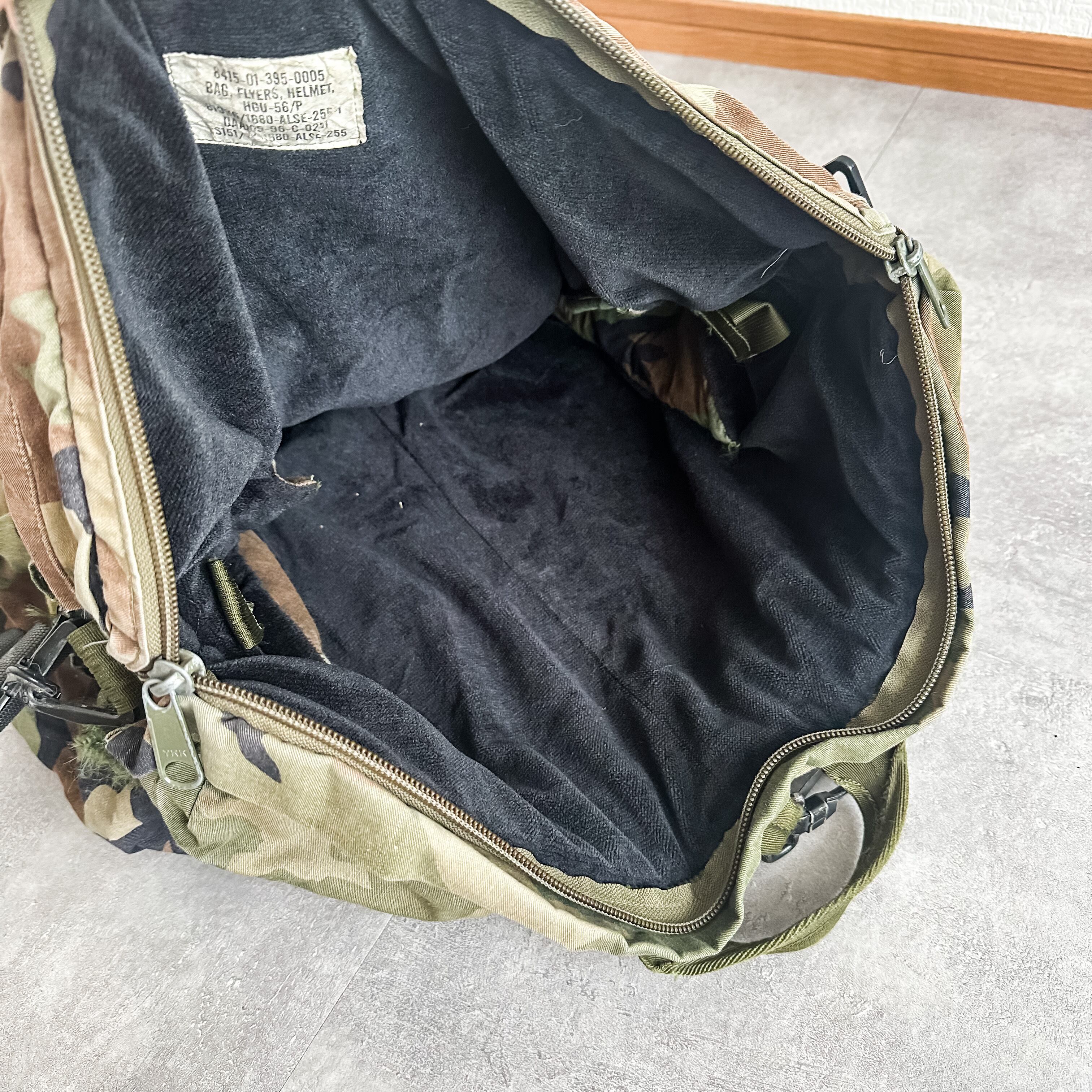 特徴 :1990's 米軍のHGU-56/P ウッドランドカモヘルメットバッグ。