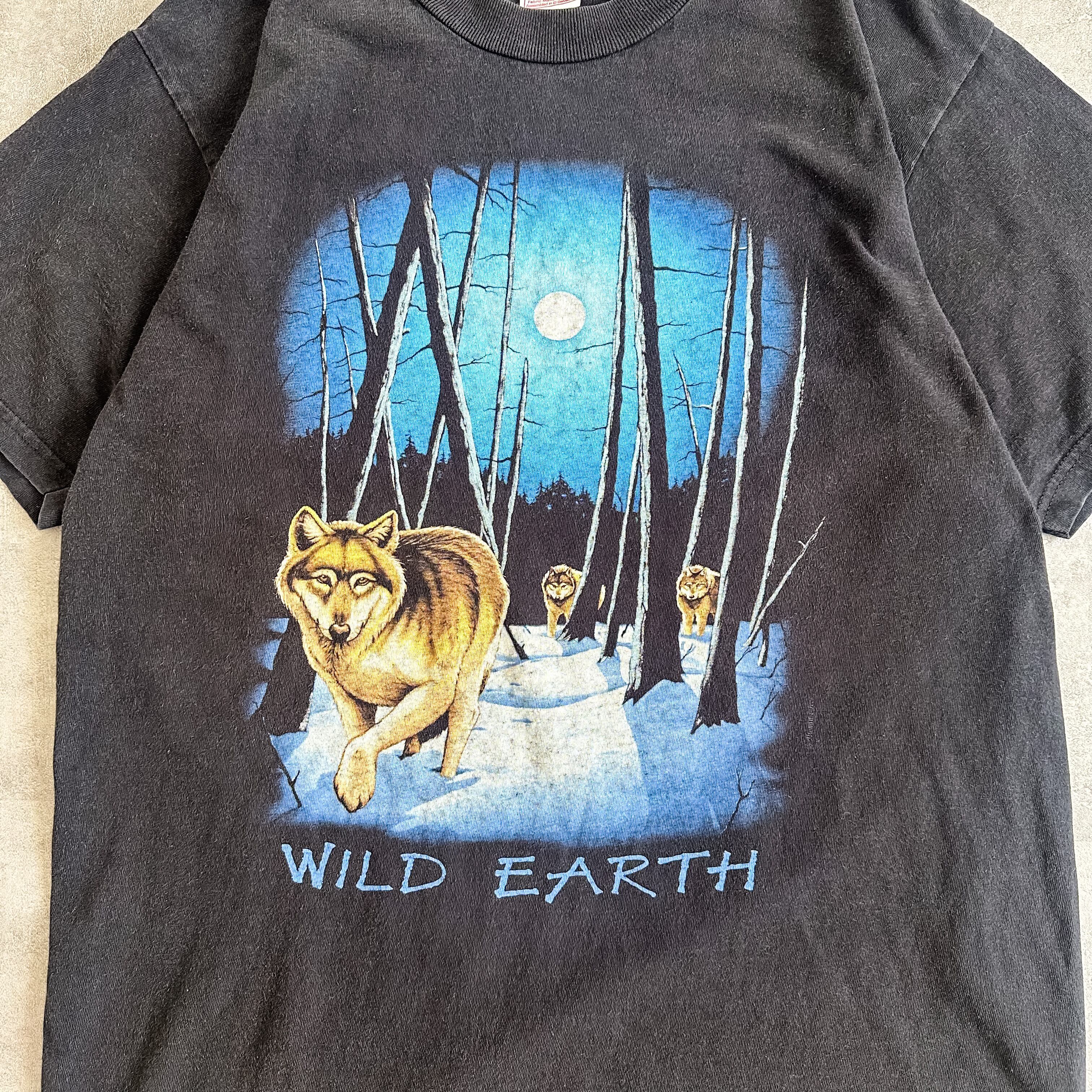 1990's~ "Wolf" print black tee