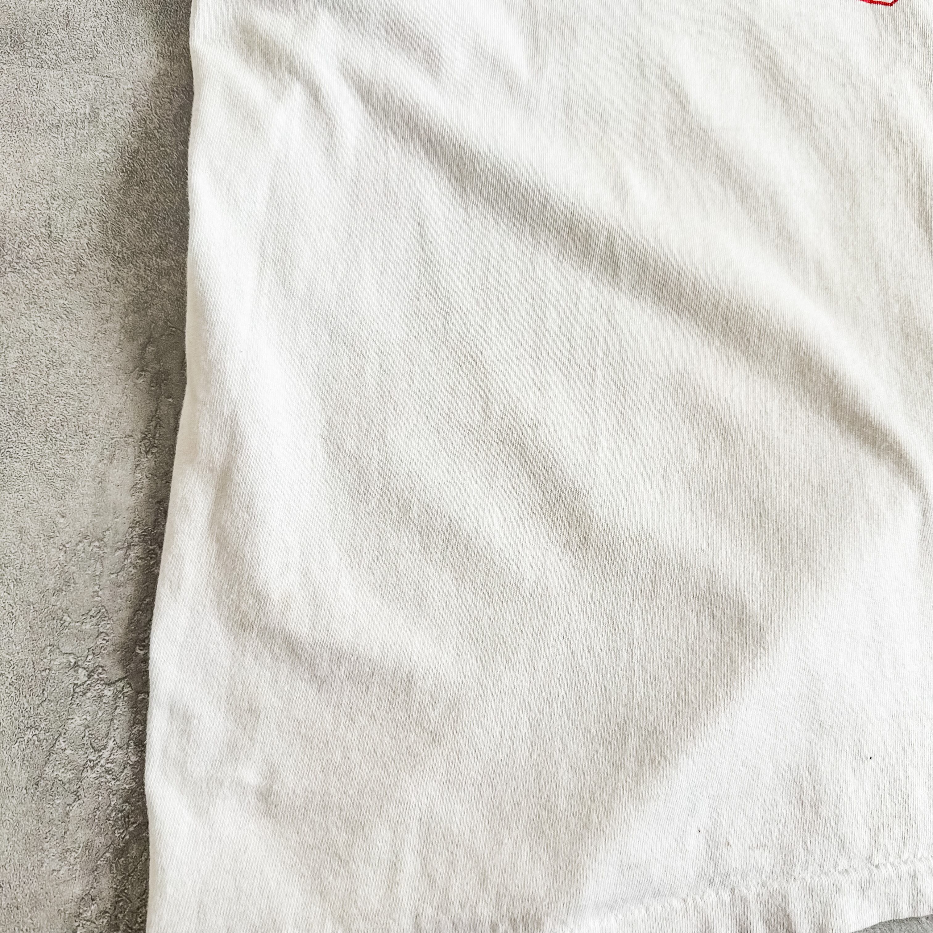 オールコットンのボディーに、シングルステッチ。
