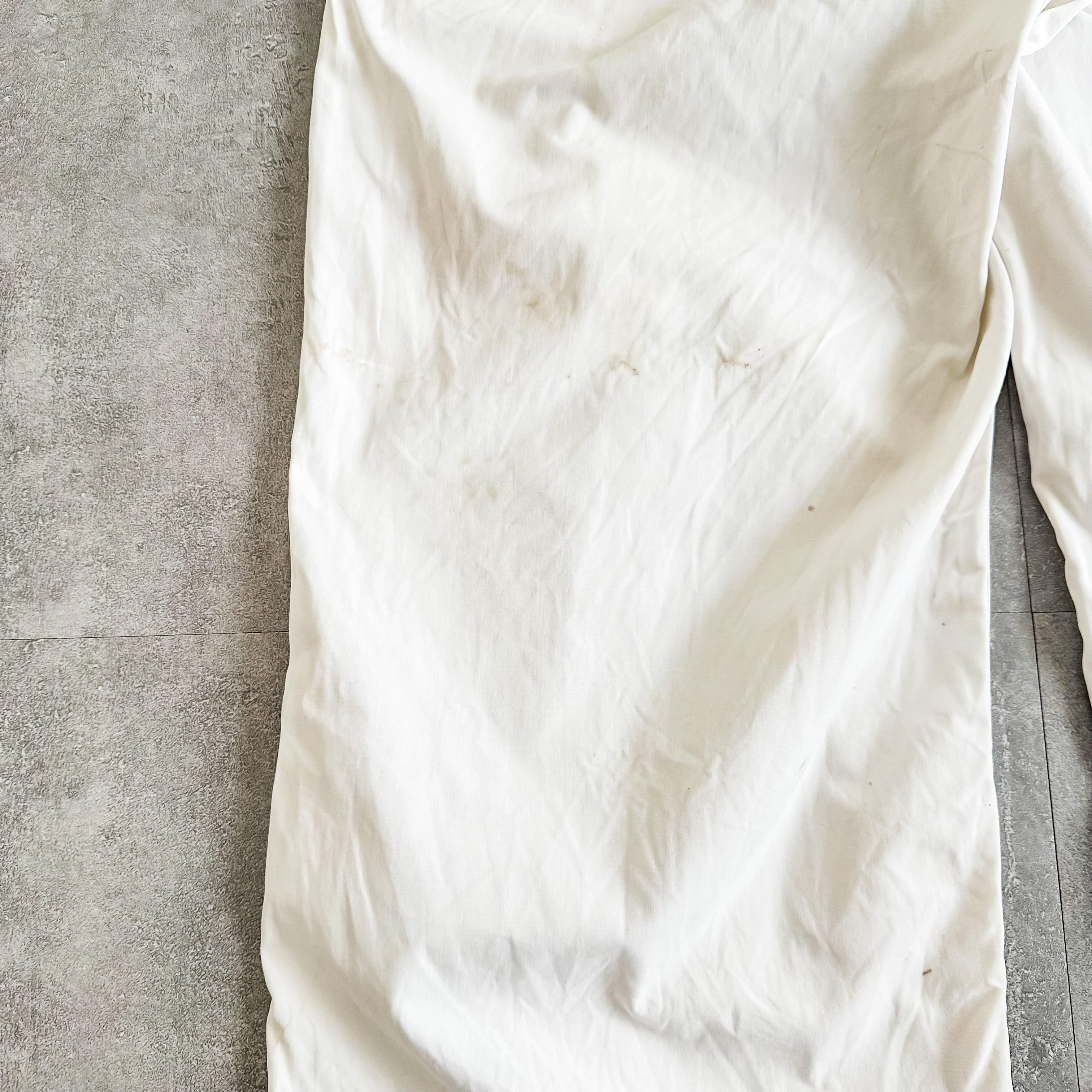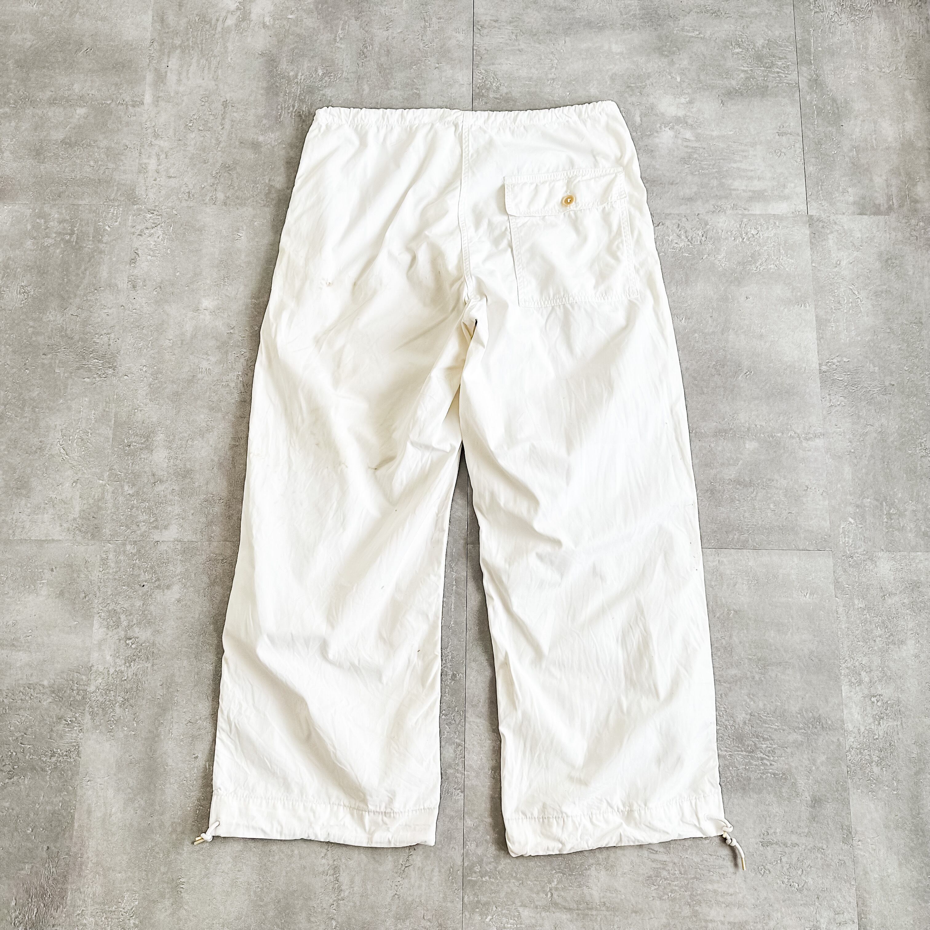 ※※古着故の多少の着用感や画像のような汚れやリペア、裾にダメージがございます。またウエストの紐にほつれがあります。オーバーパンツですのでポケットは貫通式です。古着に理解のない方のご購入はお控えください。