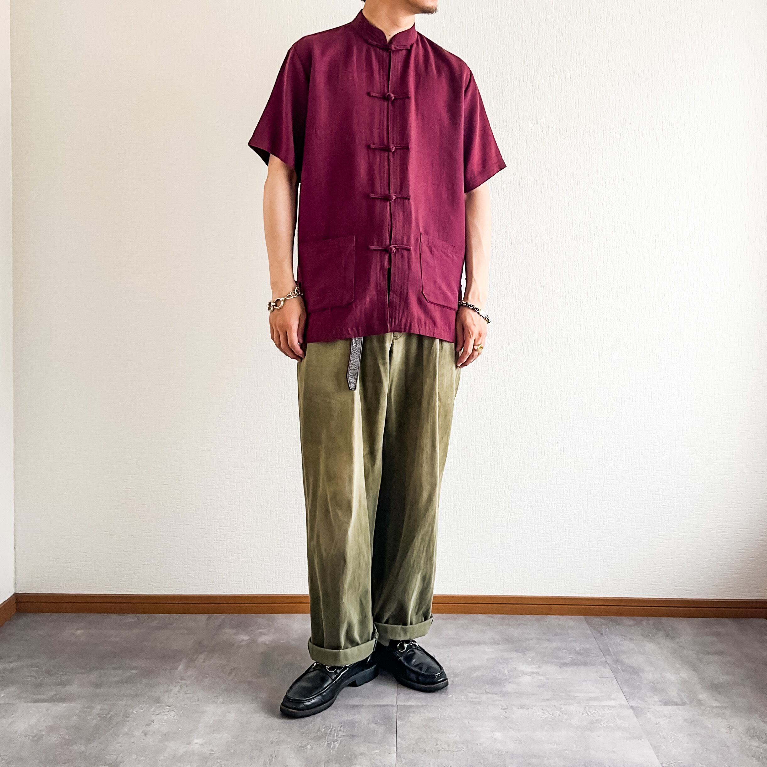 チャイナシャツの中でも珍しい小豆色のようなレアカラーですのでお見逃しなく。