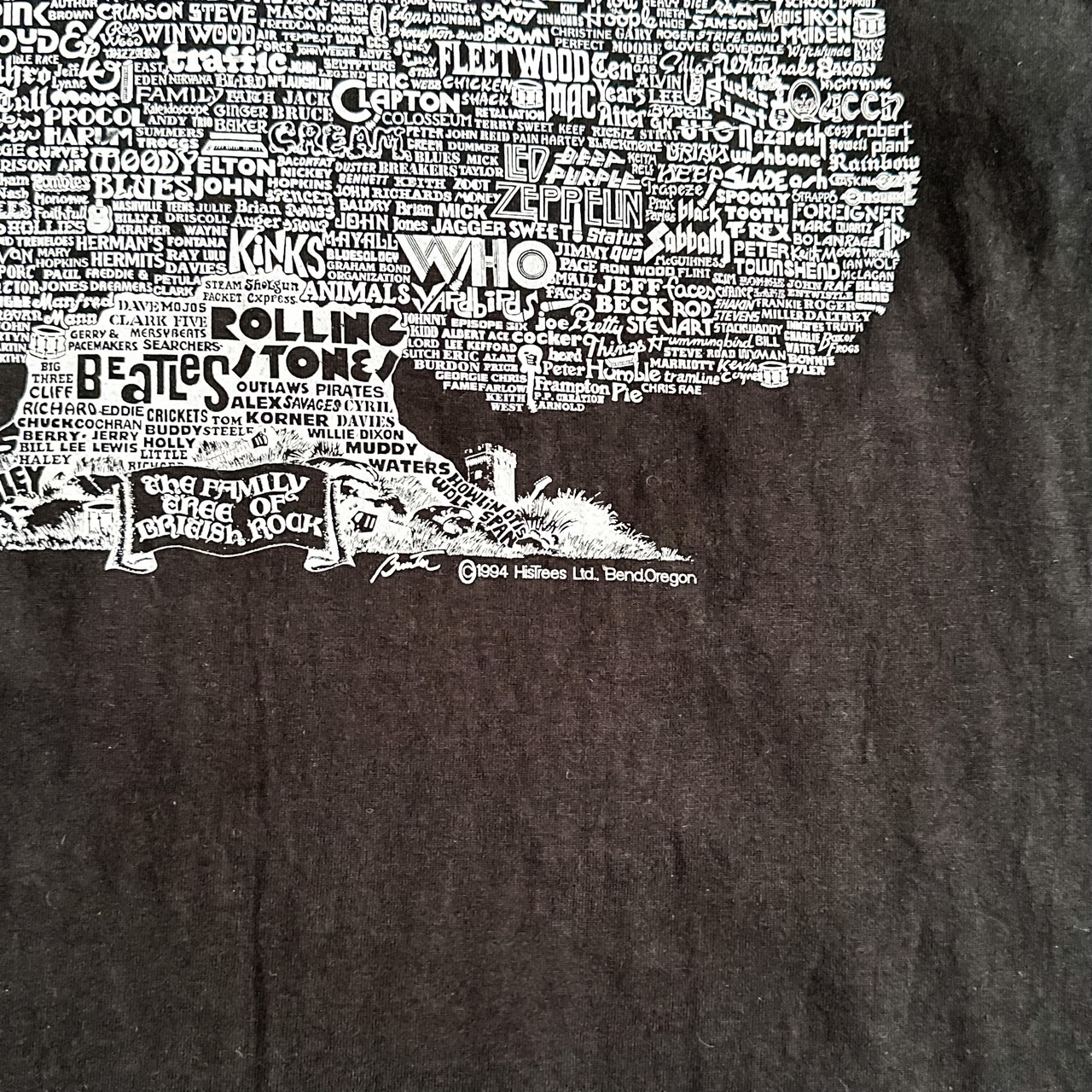 Dead stock! 1990's "THE FAMILY TREE OF BRITISH ROCK" print tee made in USA
