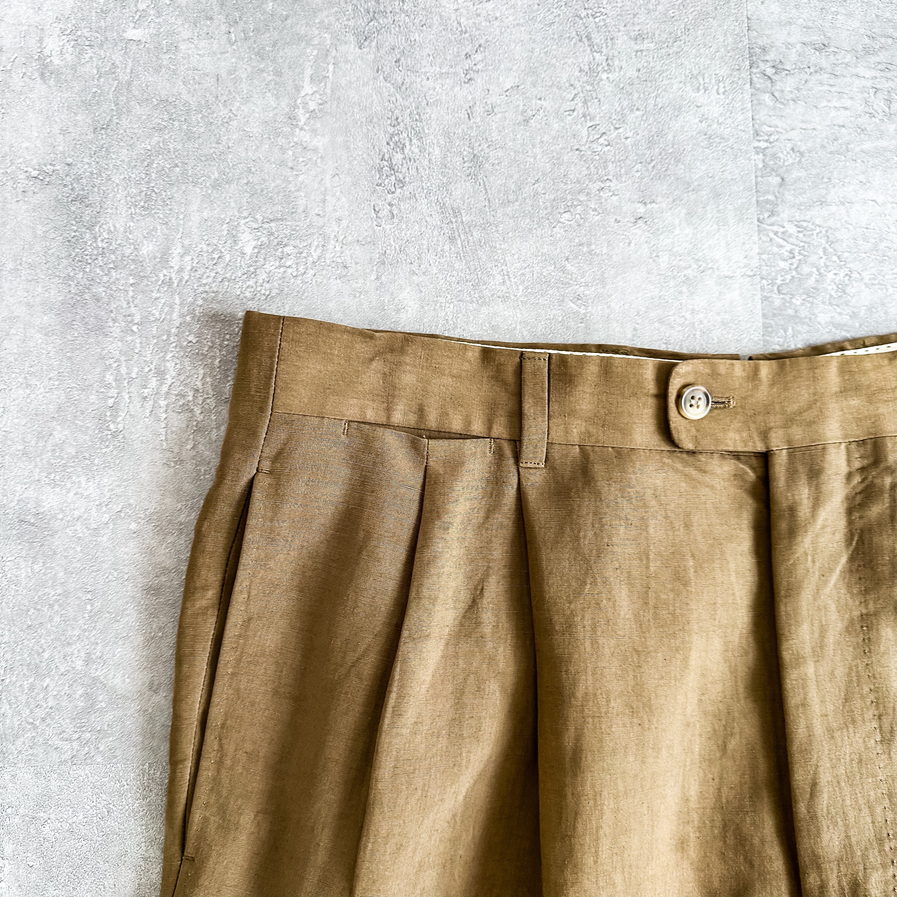 1990's "Wilkes Bashford" two tuck linen×silk slacks pants made in France