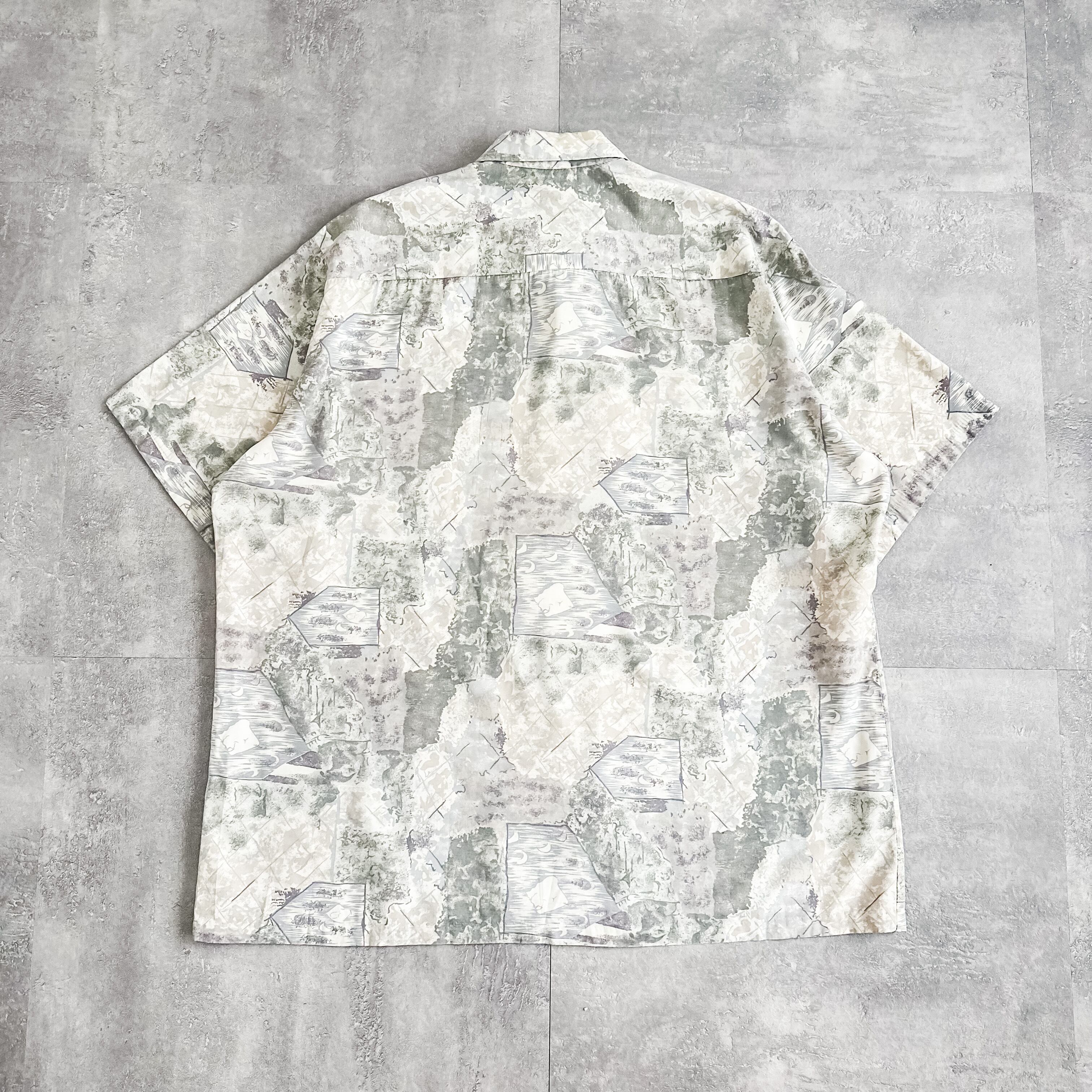 1980's~ bigsize patterned allover rayon s/s shirt