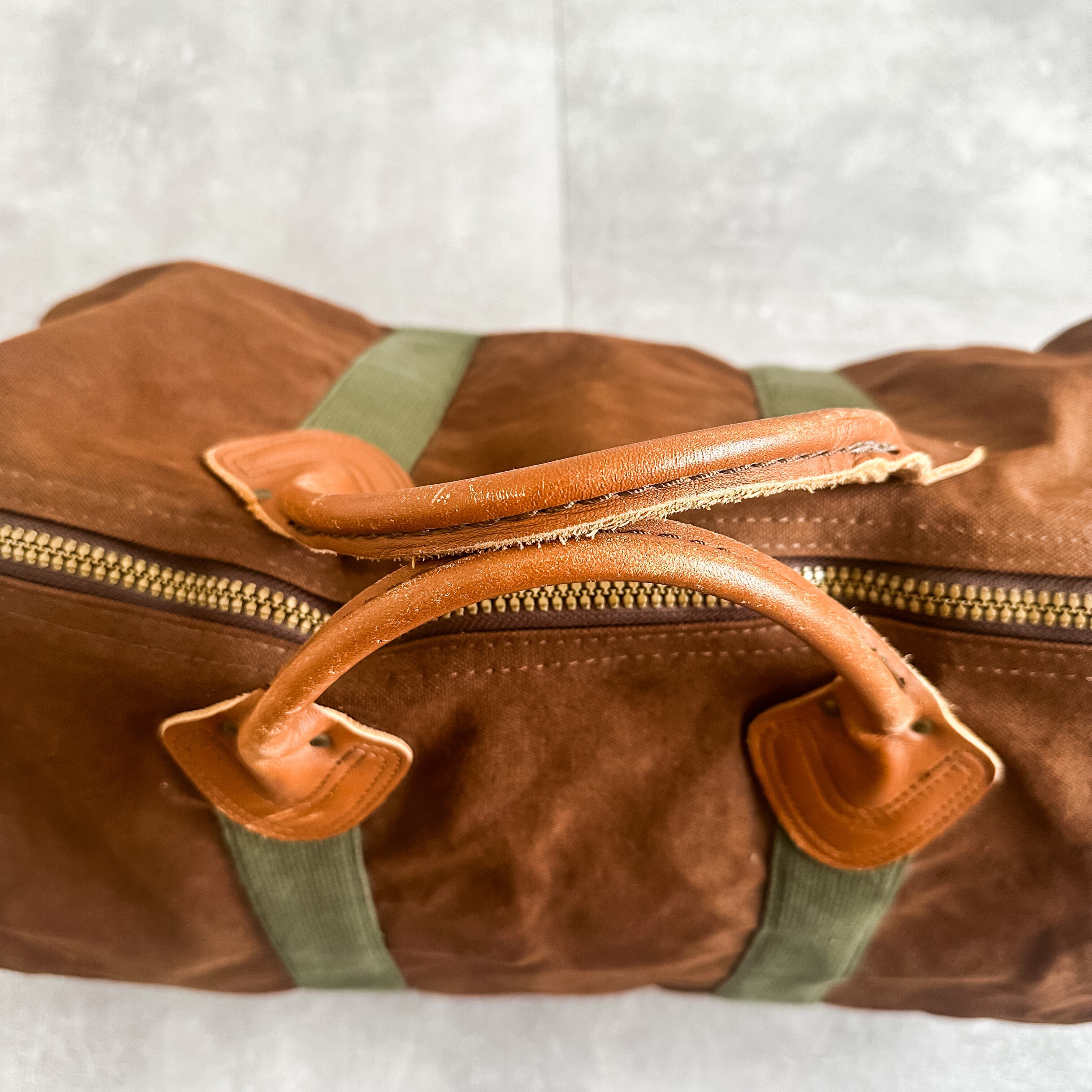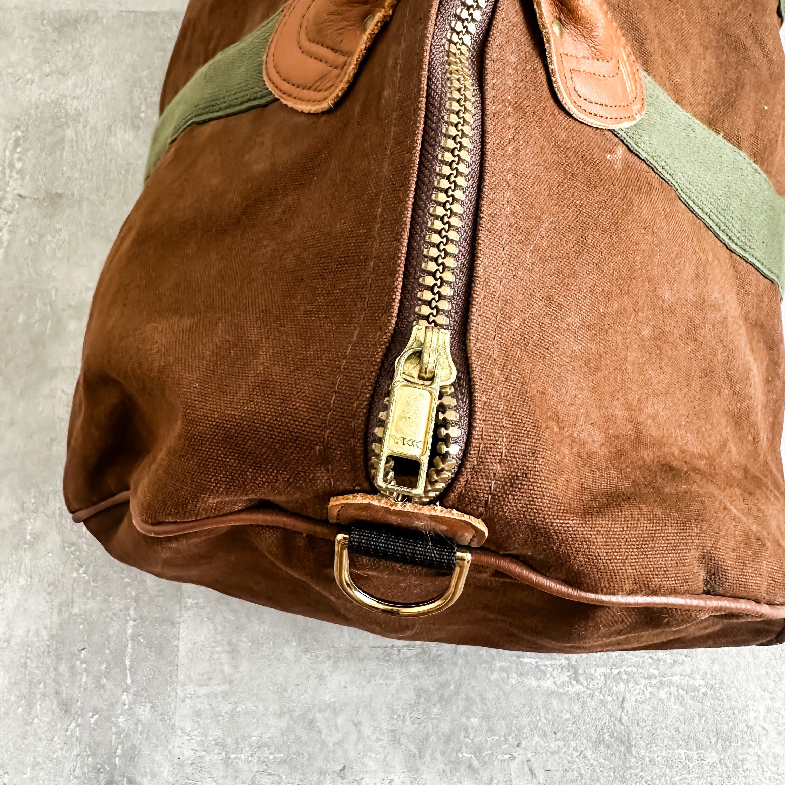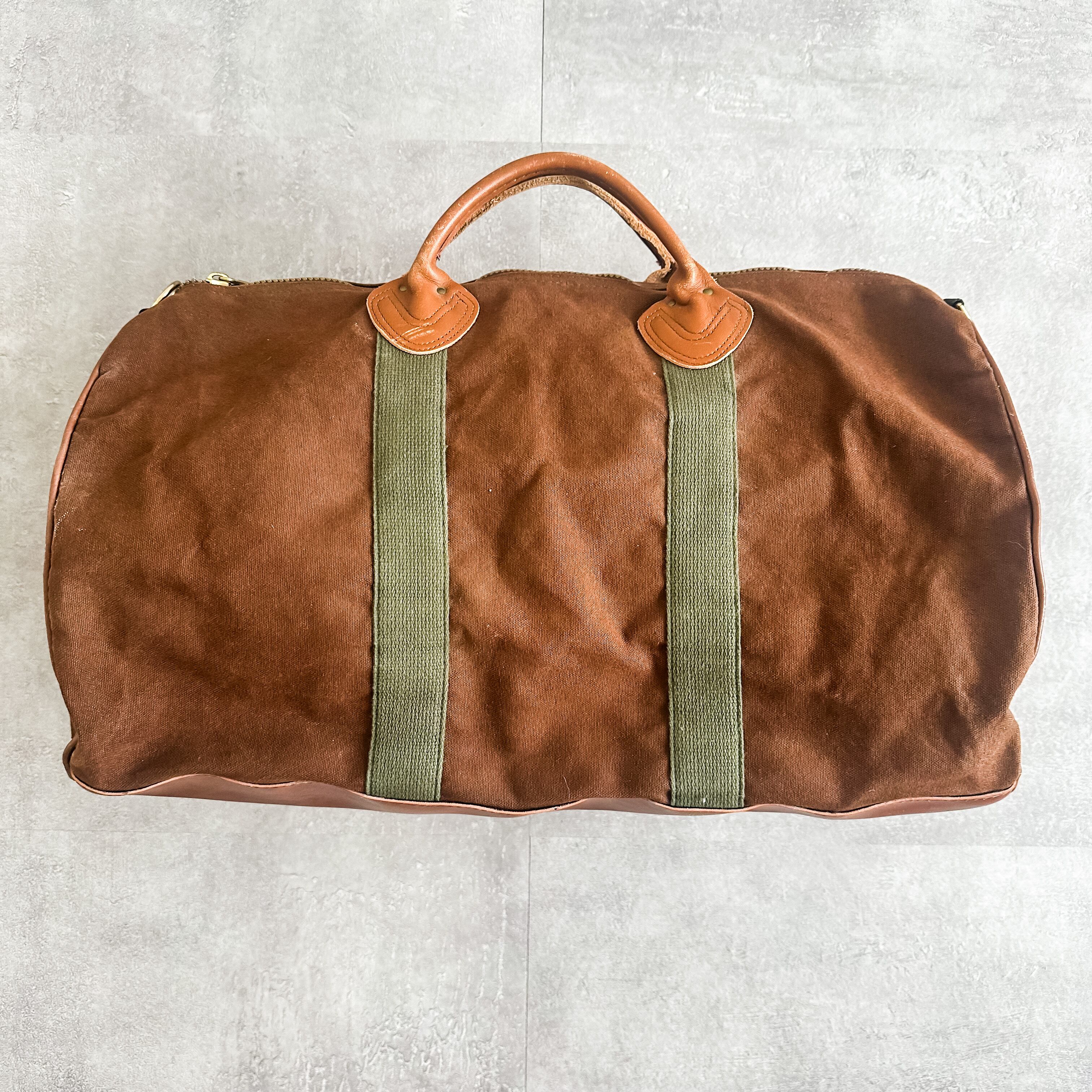 1980's "L.L.Bean" brown×green leather handle boston bag