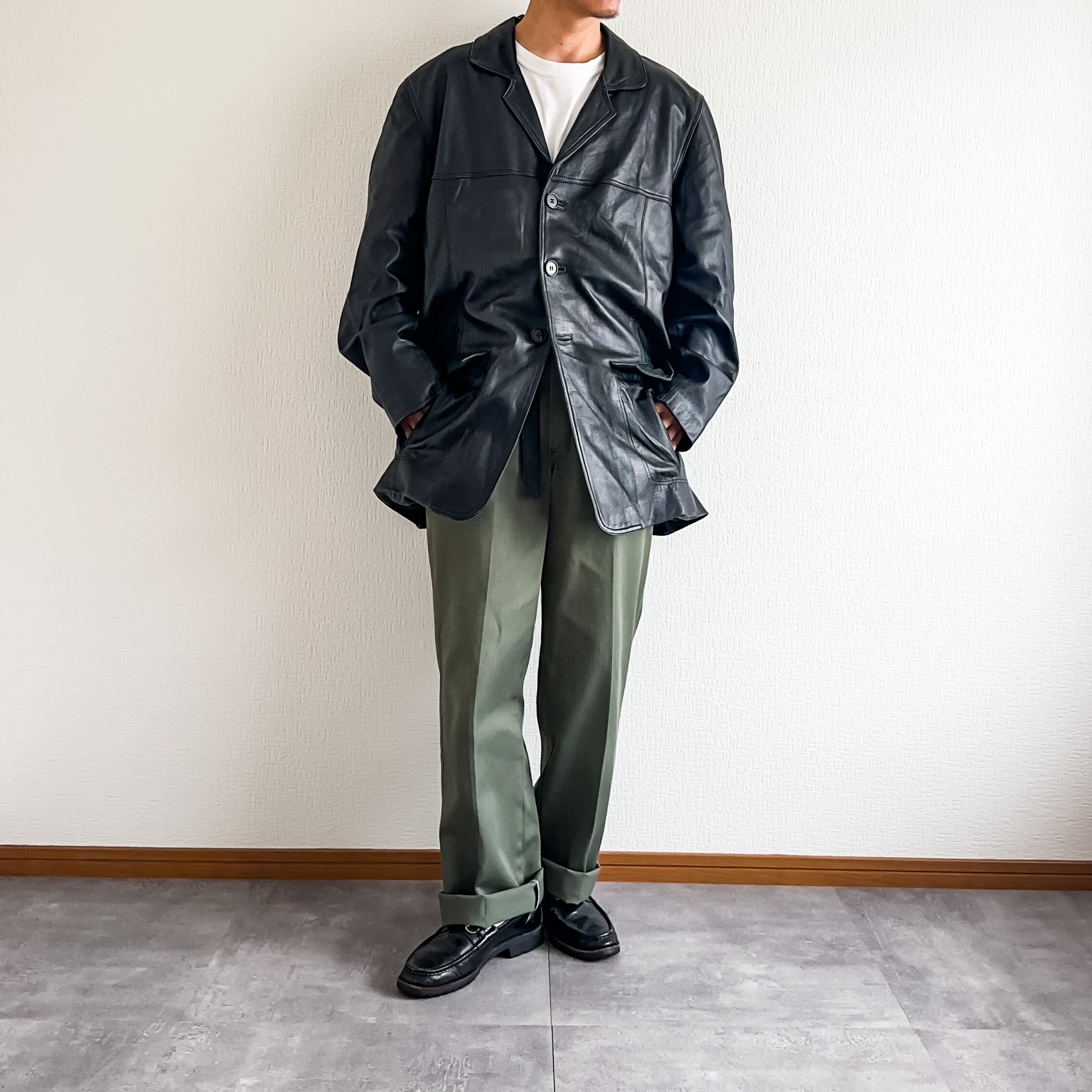 ブラックカラーにもちもちとした柔らかなレザーが使用された一着。