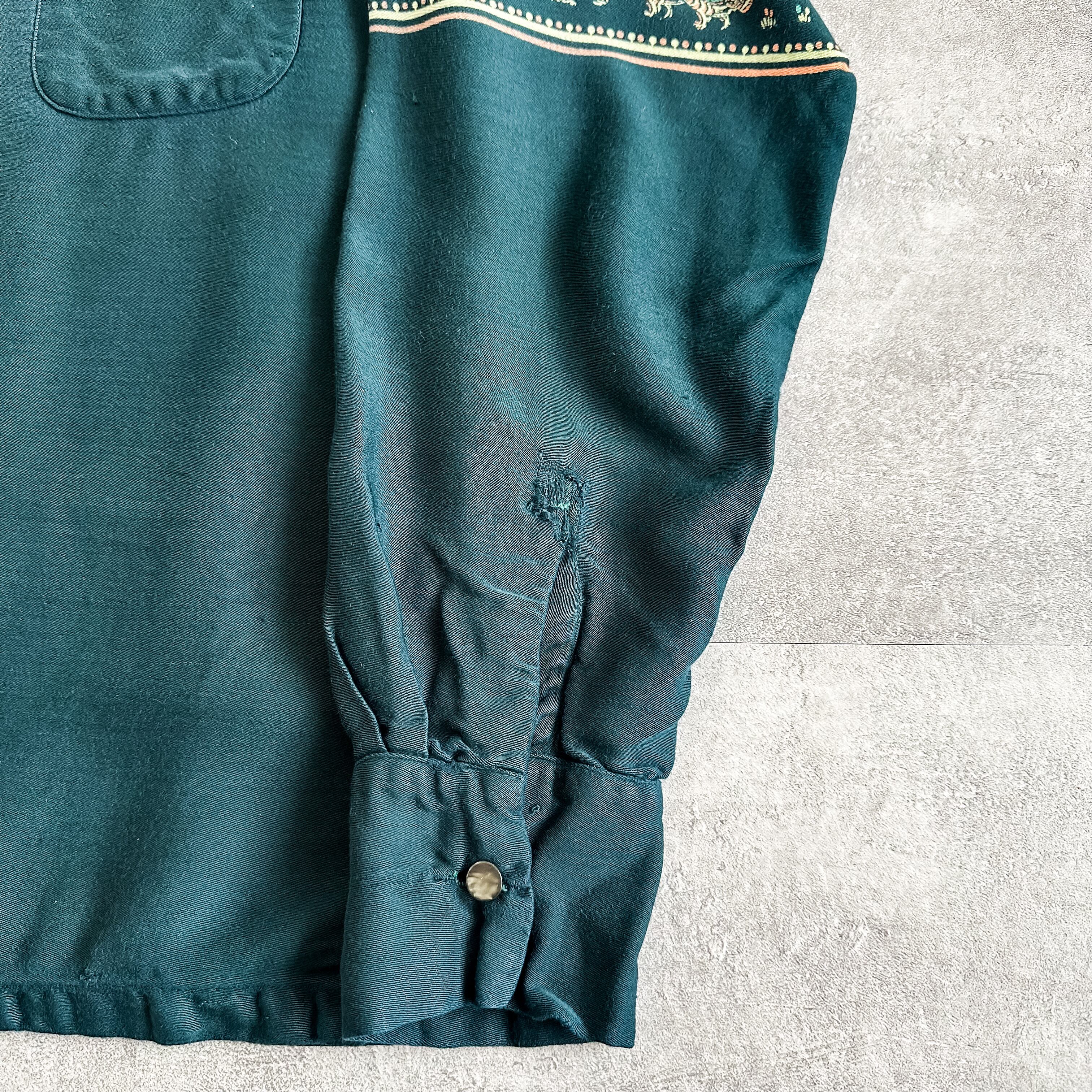 Vintage 1950's green pullover Peter Pan rayon shirt