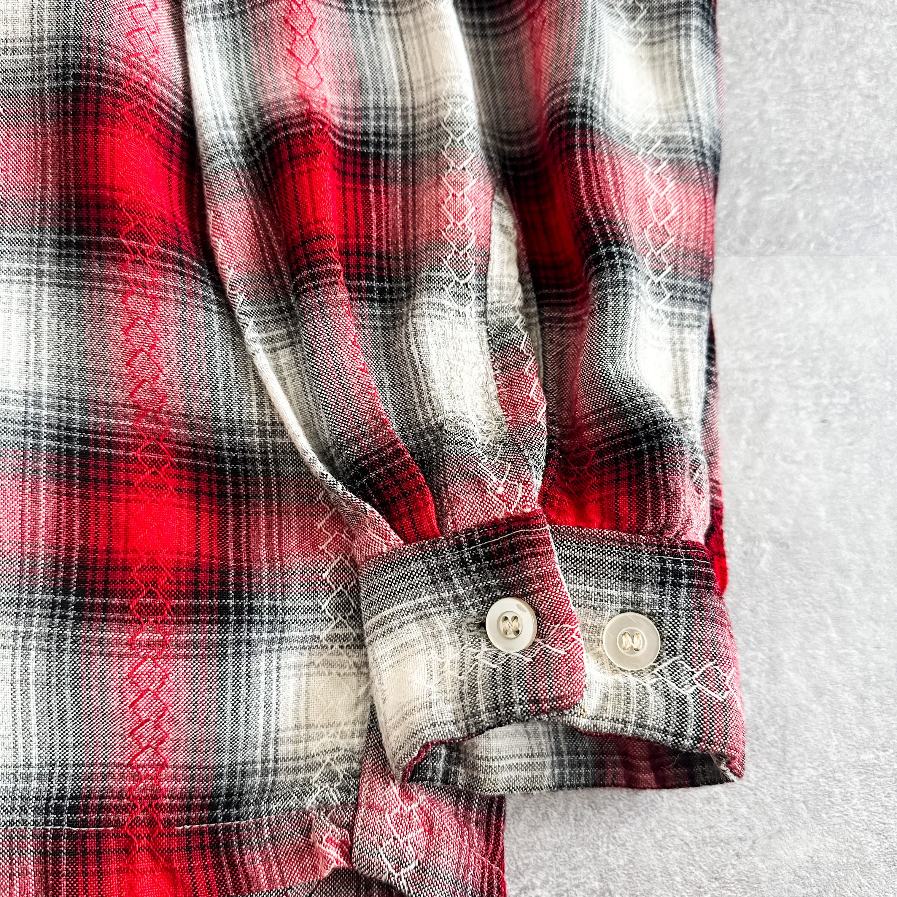 レッド×ホワイトをベースにブラックやグレーも混ざった素晴らしい配色のシャドーチェックがクールな一枚です。