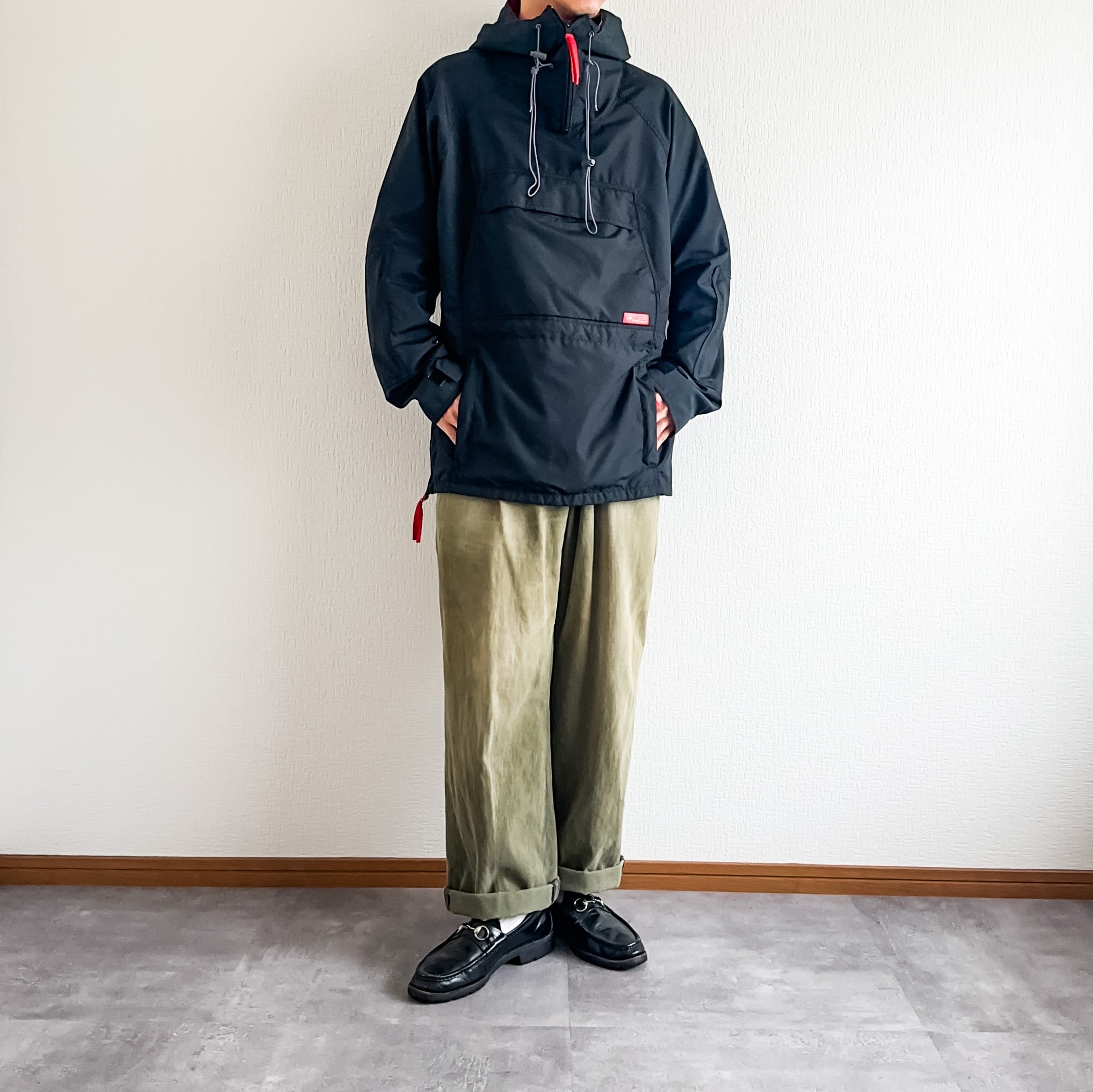 希少なブラックカラーに高めに付くジップスタイル、フロントには二段の大きなポケットが付く珍しいディテール。