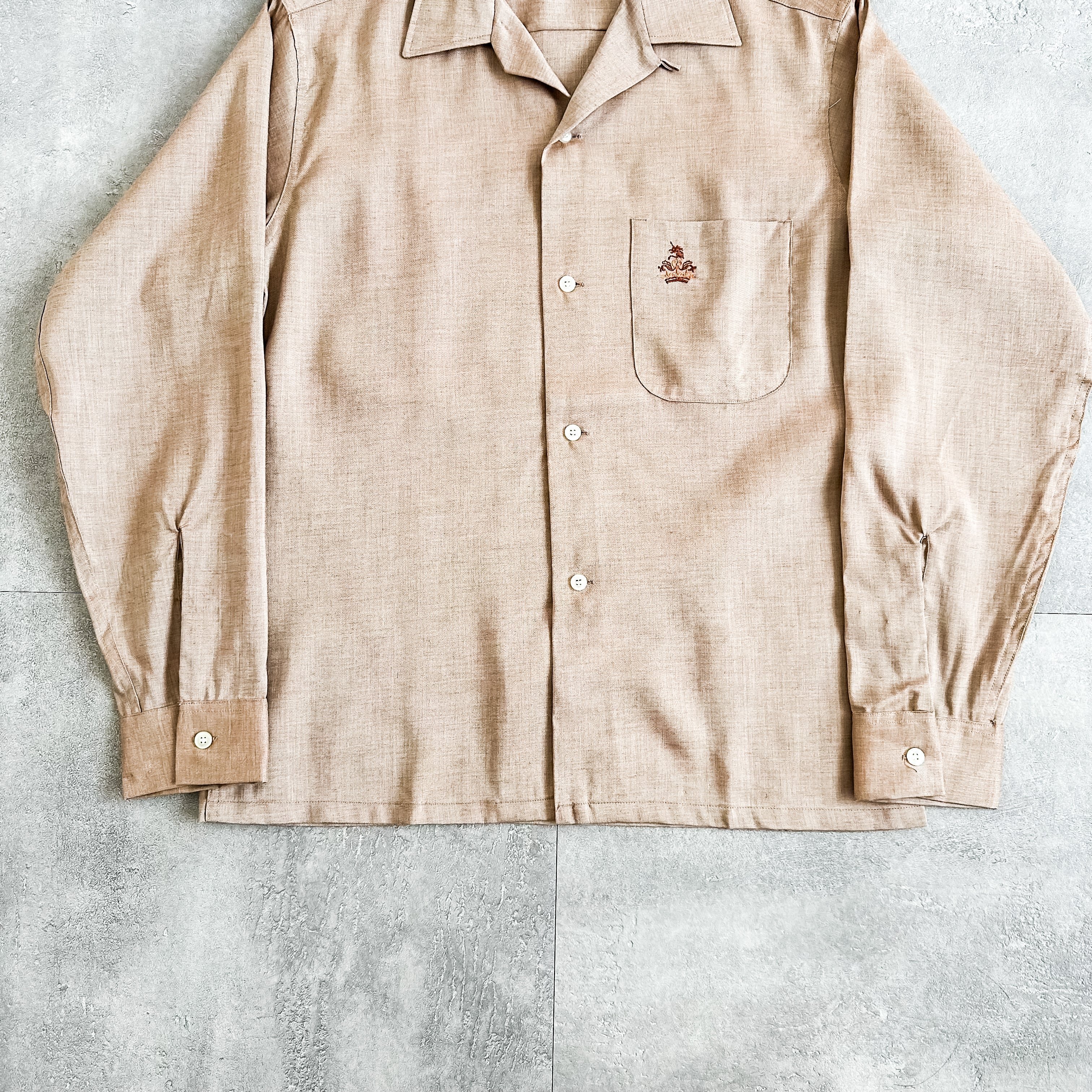 この年代頃のオープンカラーのレーヨンシャツは昨今のヴィンテージ市場から見てもかなり希少かと思います。