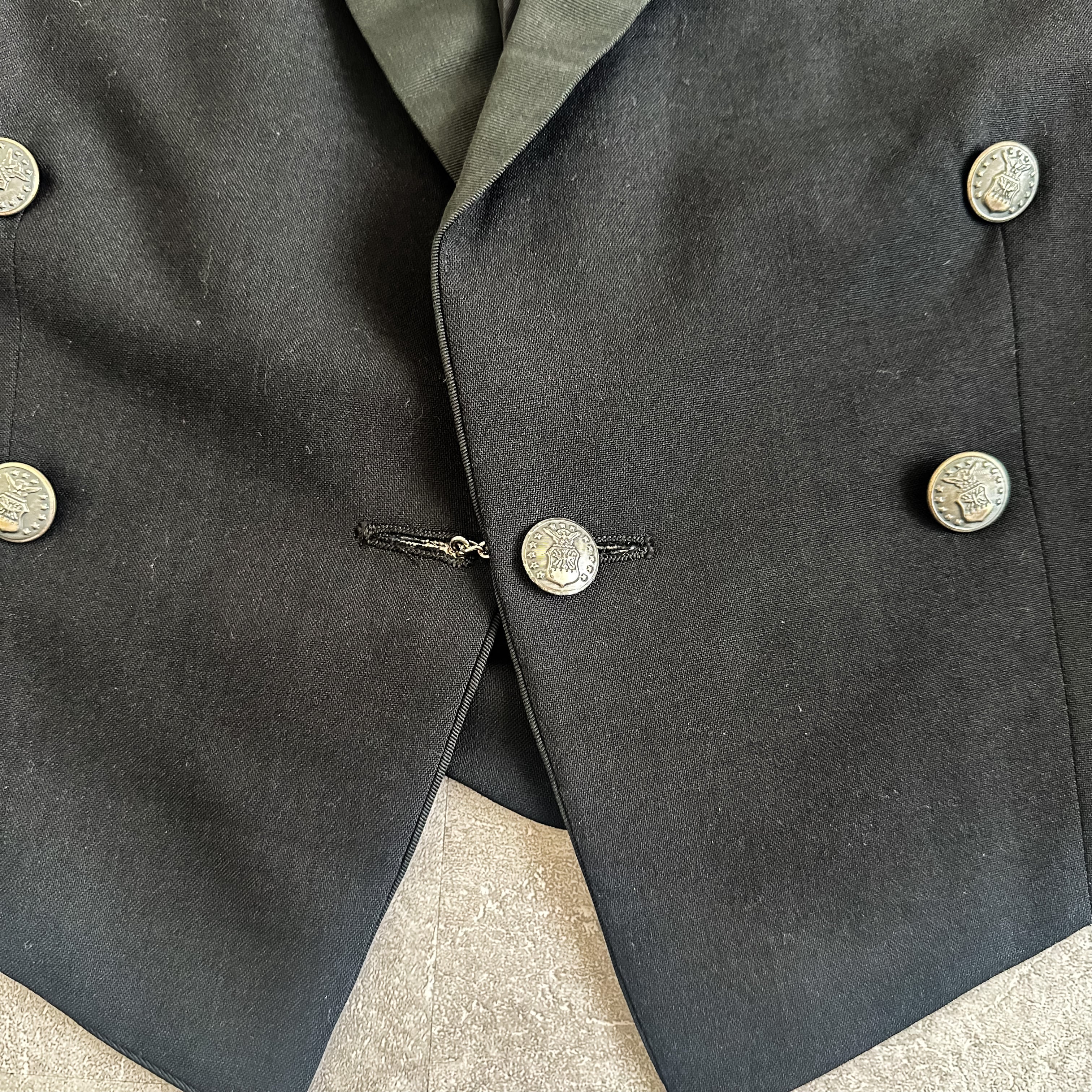 ホテルマンジャケットのようなクロップド丈の珍しいタイプのテーラードジャケット。