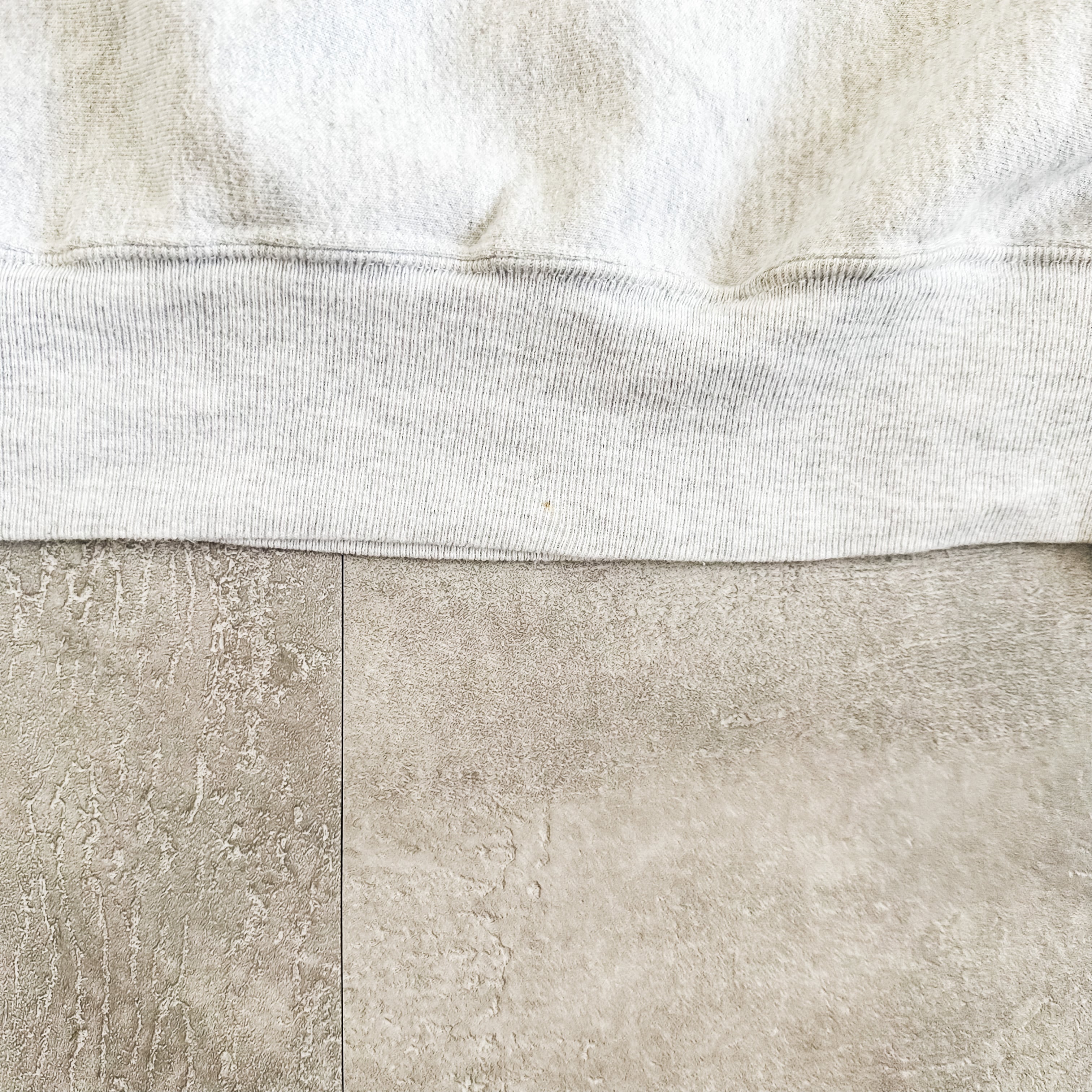 オートミールカラーに、肉厚でサイドにハギの付くリバースウィーブタイプ。
