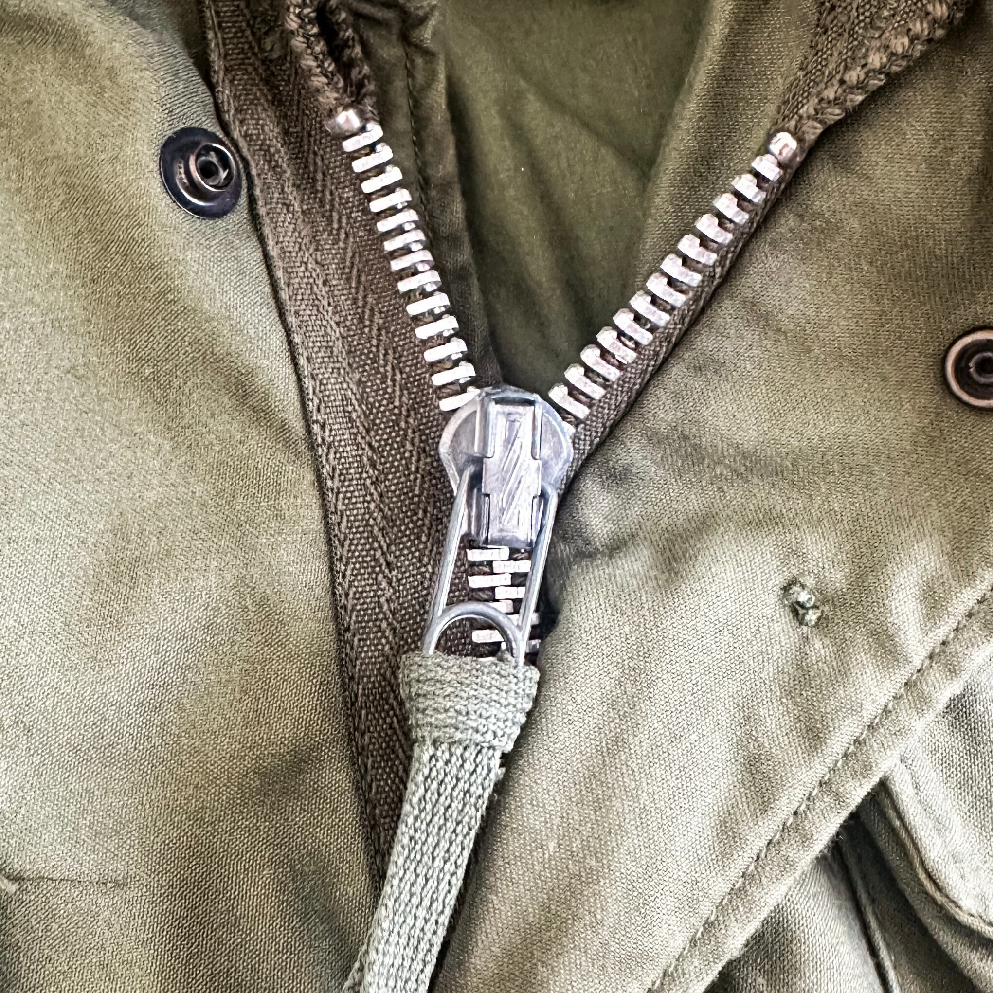 アルミジップが使用されており収納フードのジップだけで古さがわかるのも魅力ですね。