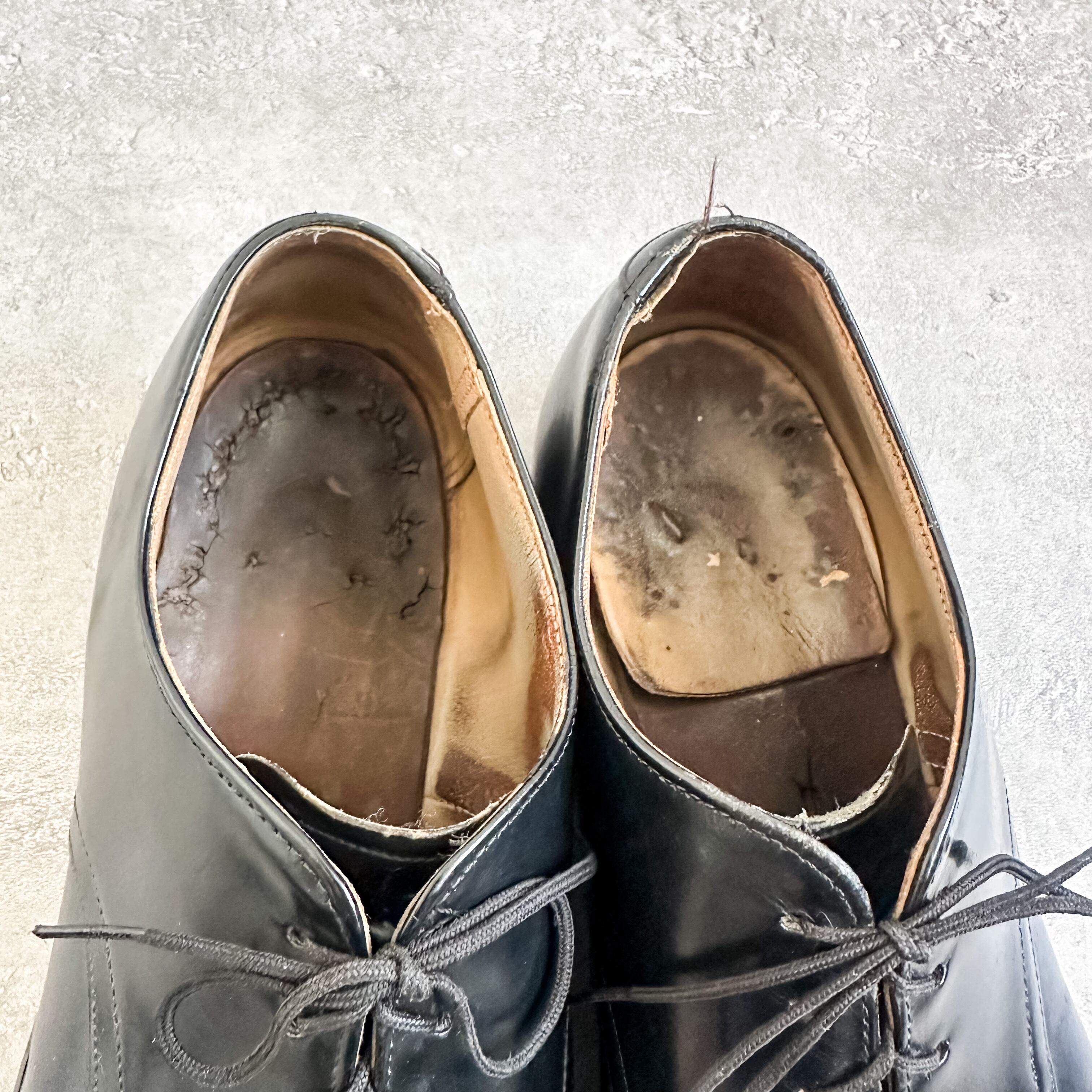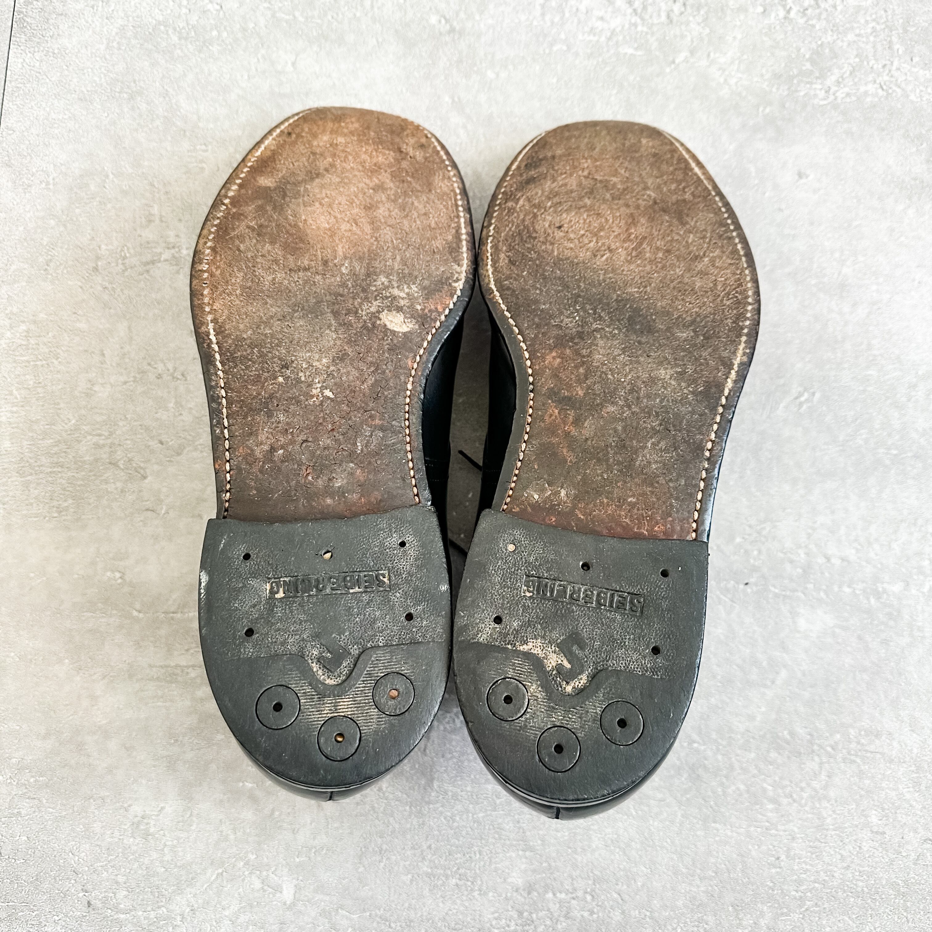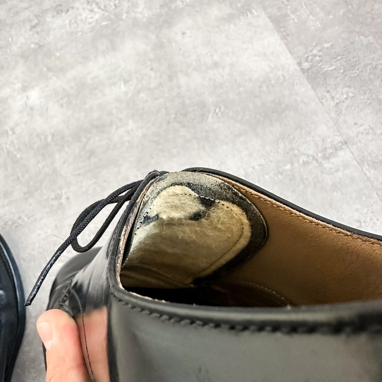 タン裏のフェルトやアウトソールにレザーが使用されているなど古いディテールです。