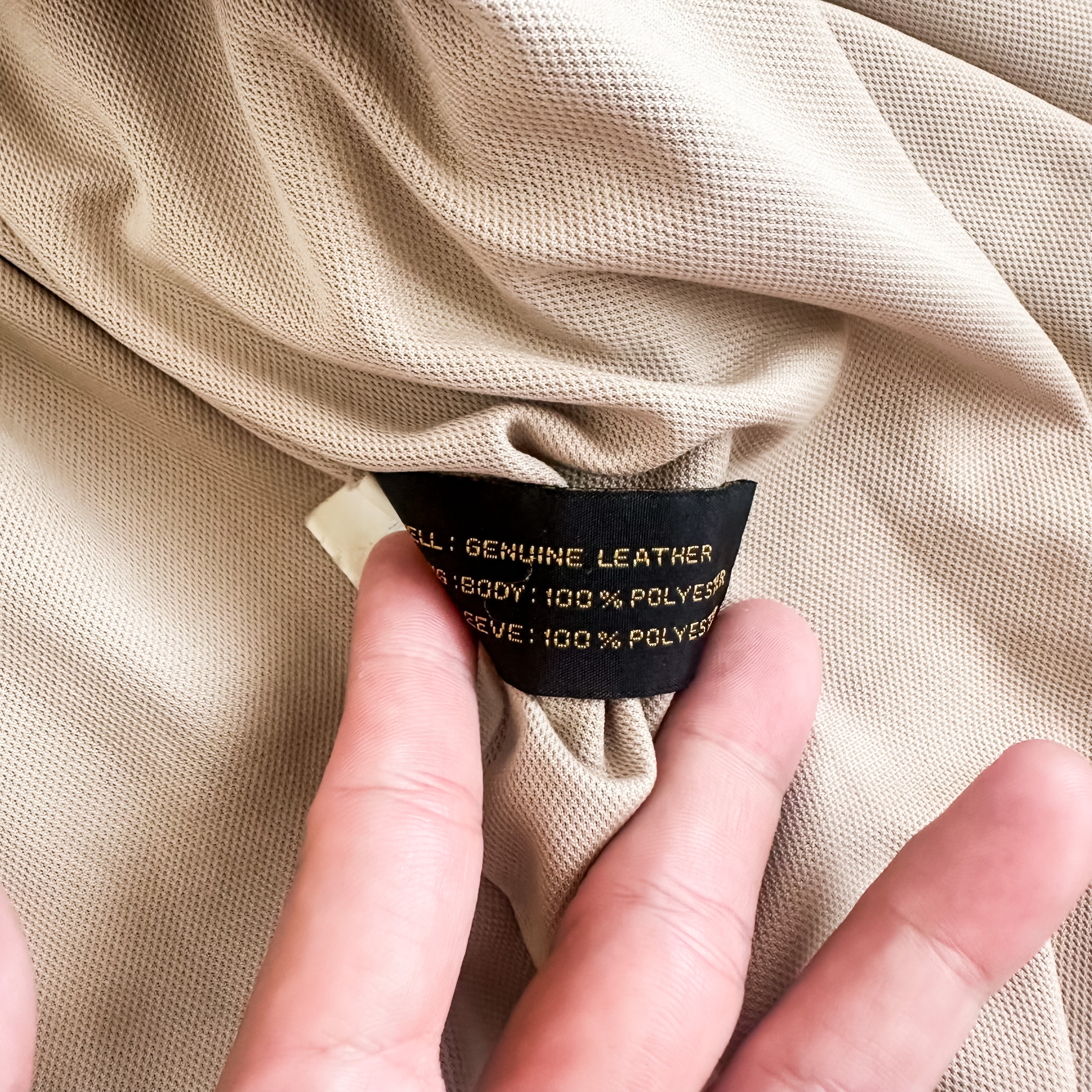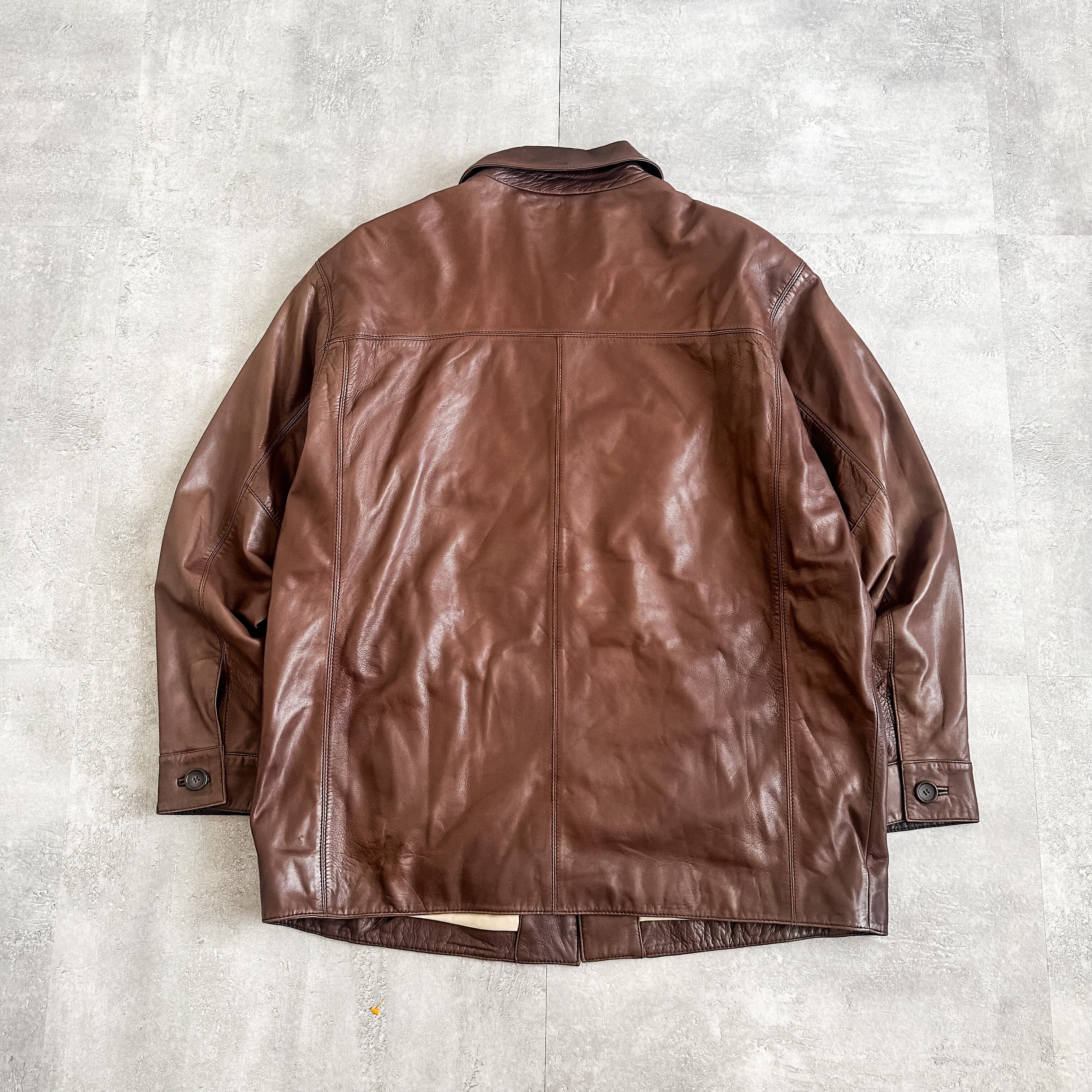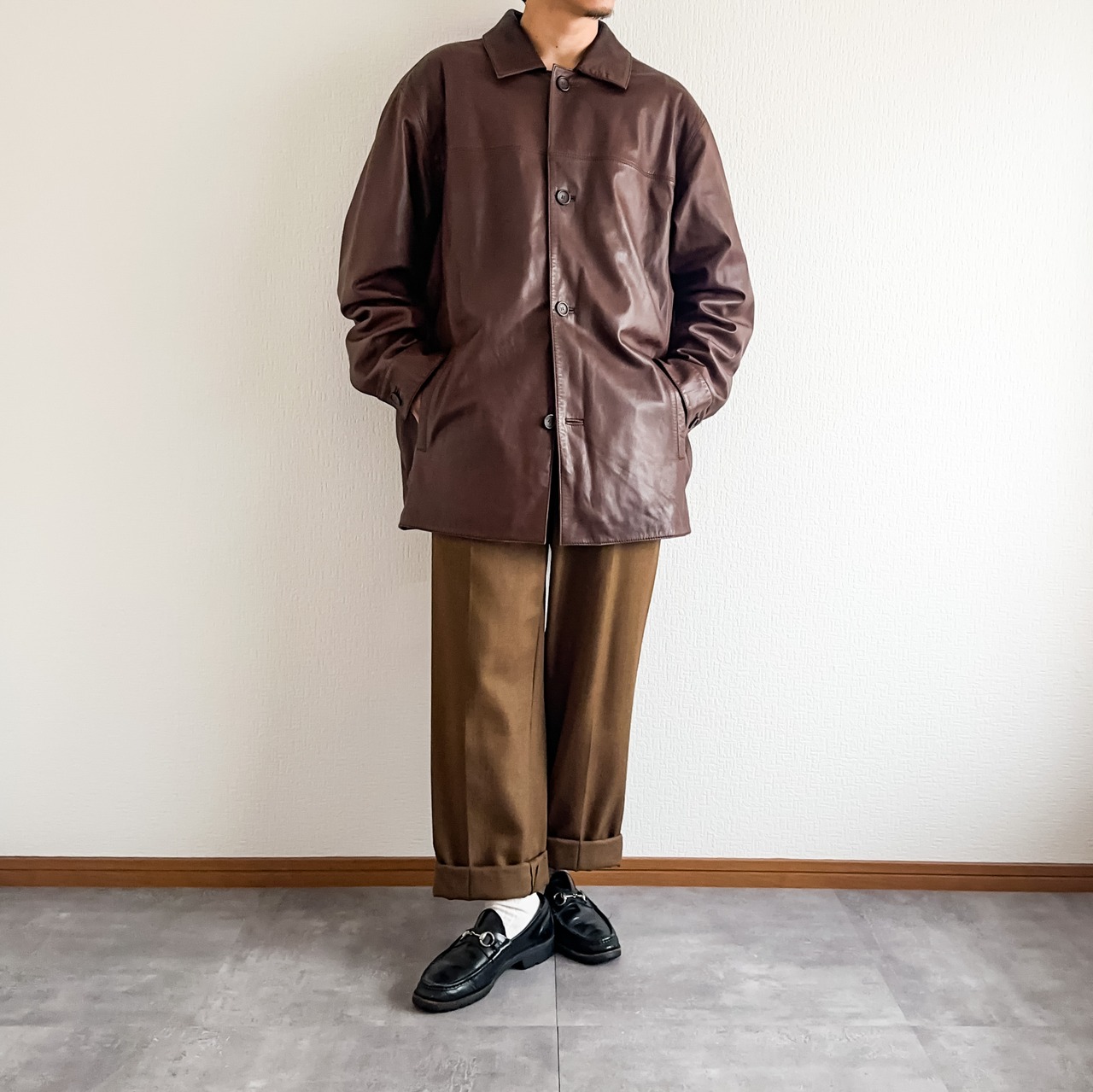 ブラウンカラーにもちもちとした柔らかなジェニュインレザーが使用された一着。