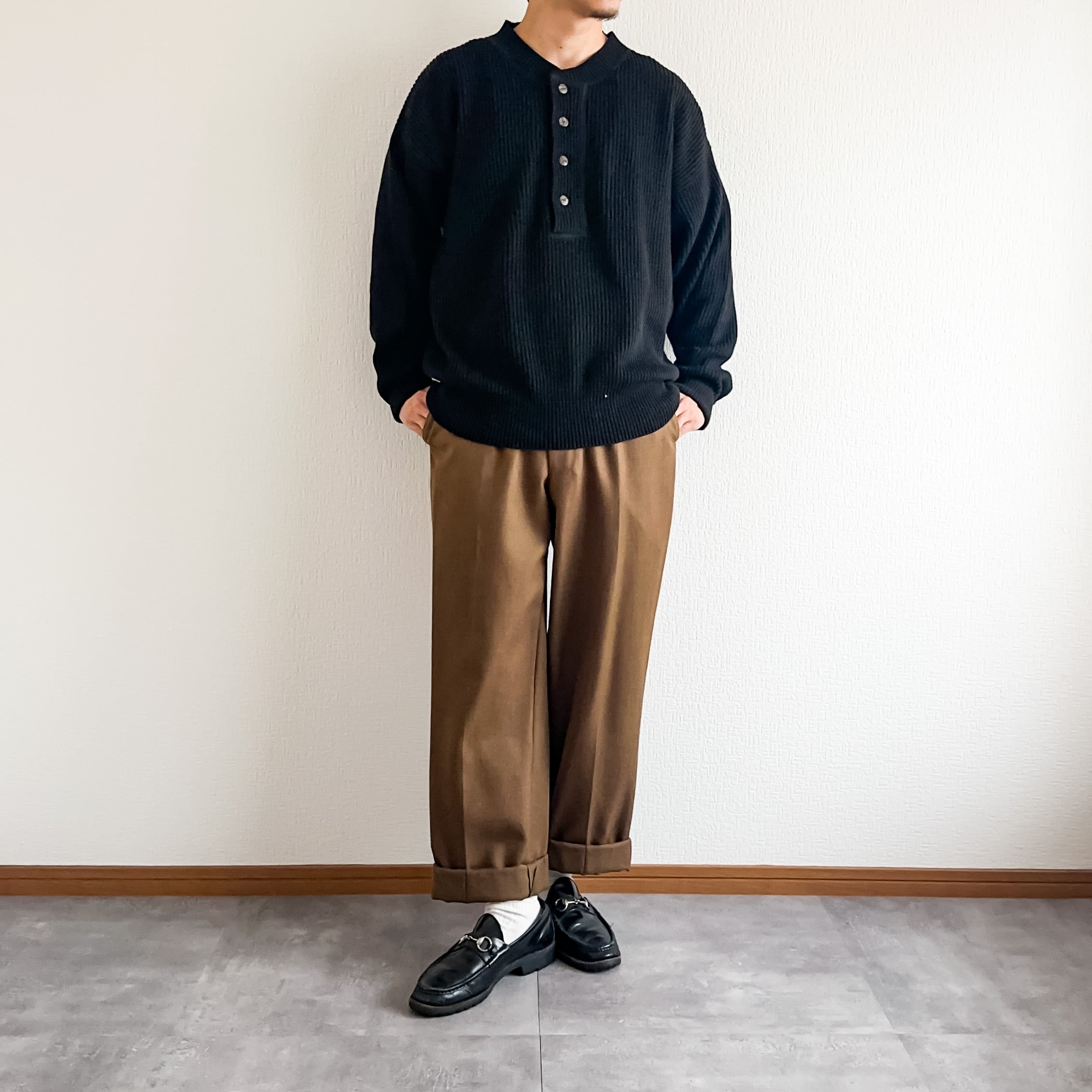 希少なブラックカラーに、リブ編みヘンリーネックのプルオーバーデザイン。