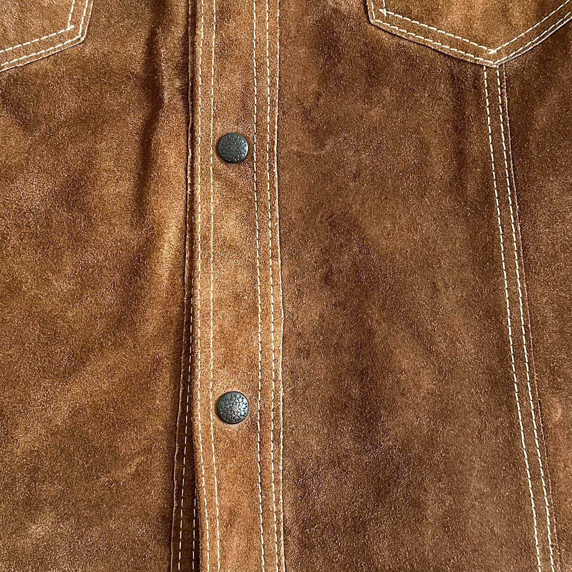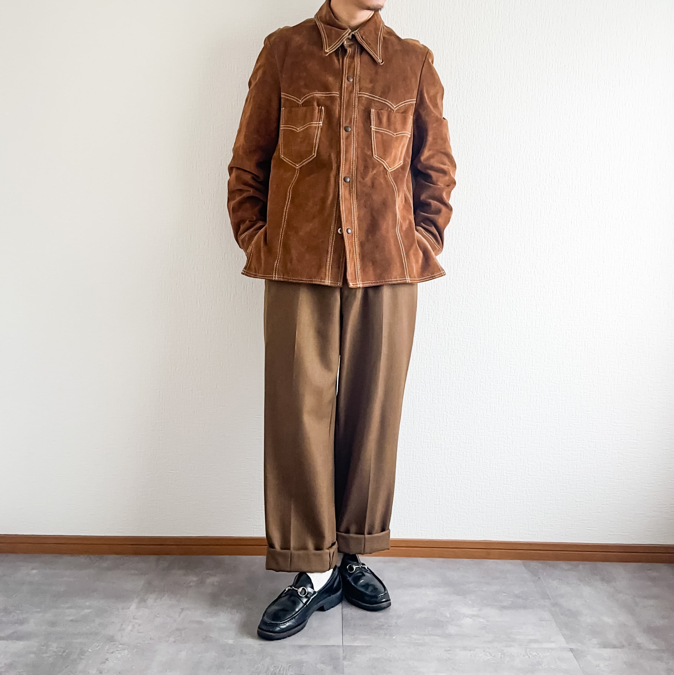 ブラウン系のカラーリングに、リーバイスのアーキュエイトのようなステッチの入るツーポケのデザインが抜群にクールですね。