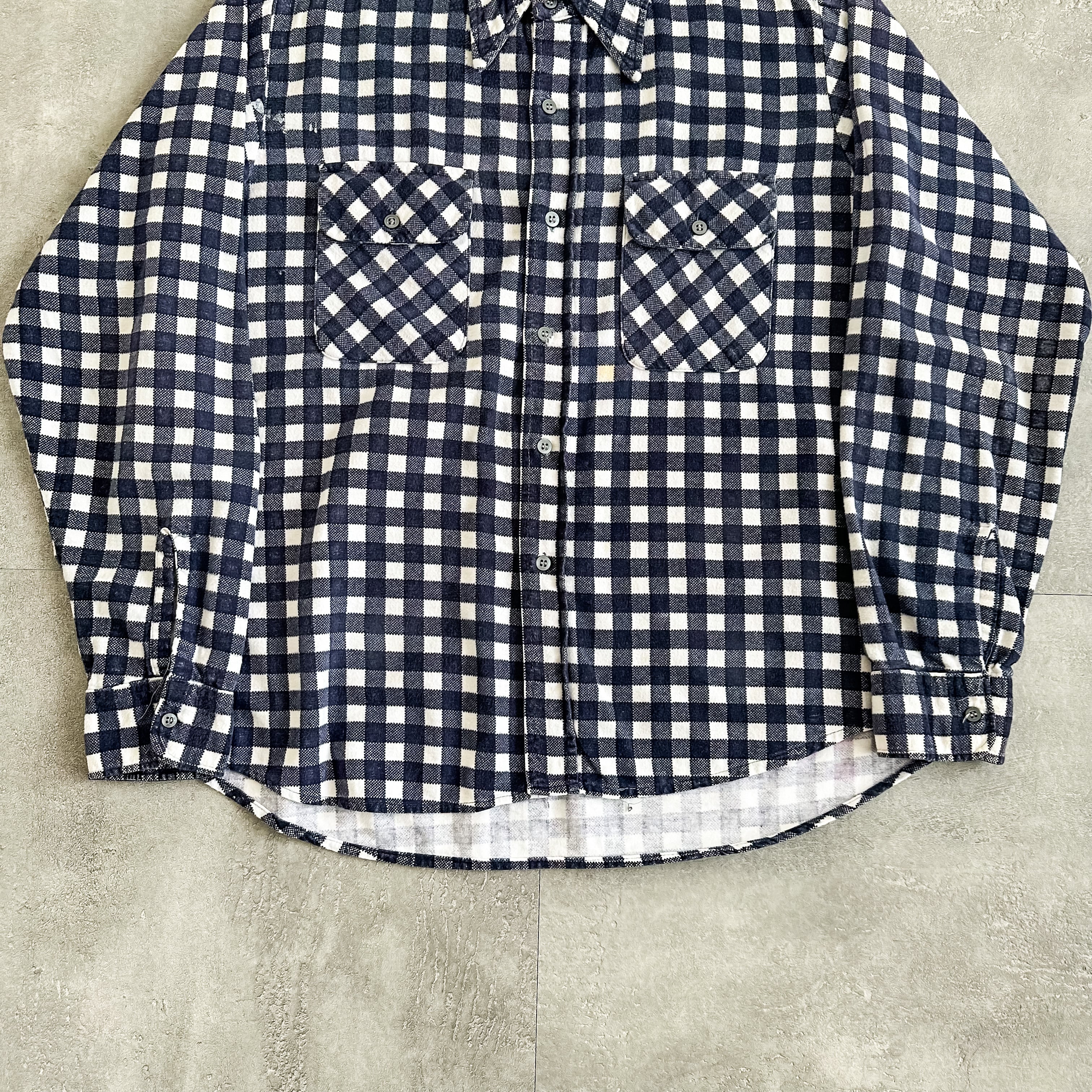 ネルシャツではあまり見かけないネイビー×ホワイトの非常に使いやすい配色のチェック柄がグッドな一枚です。