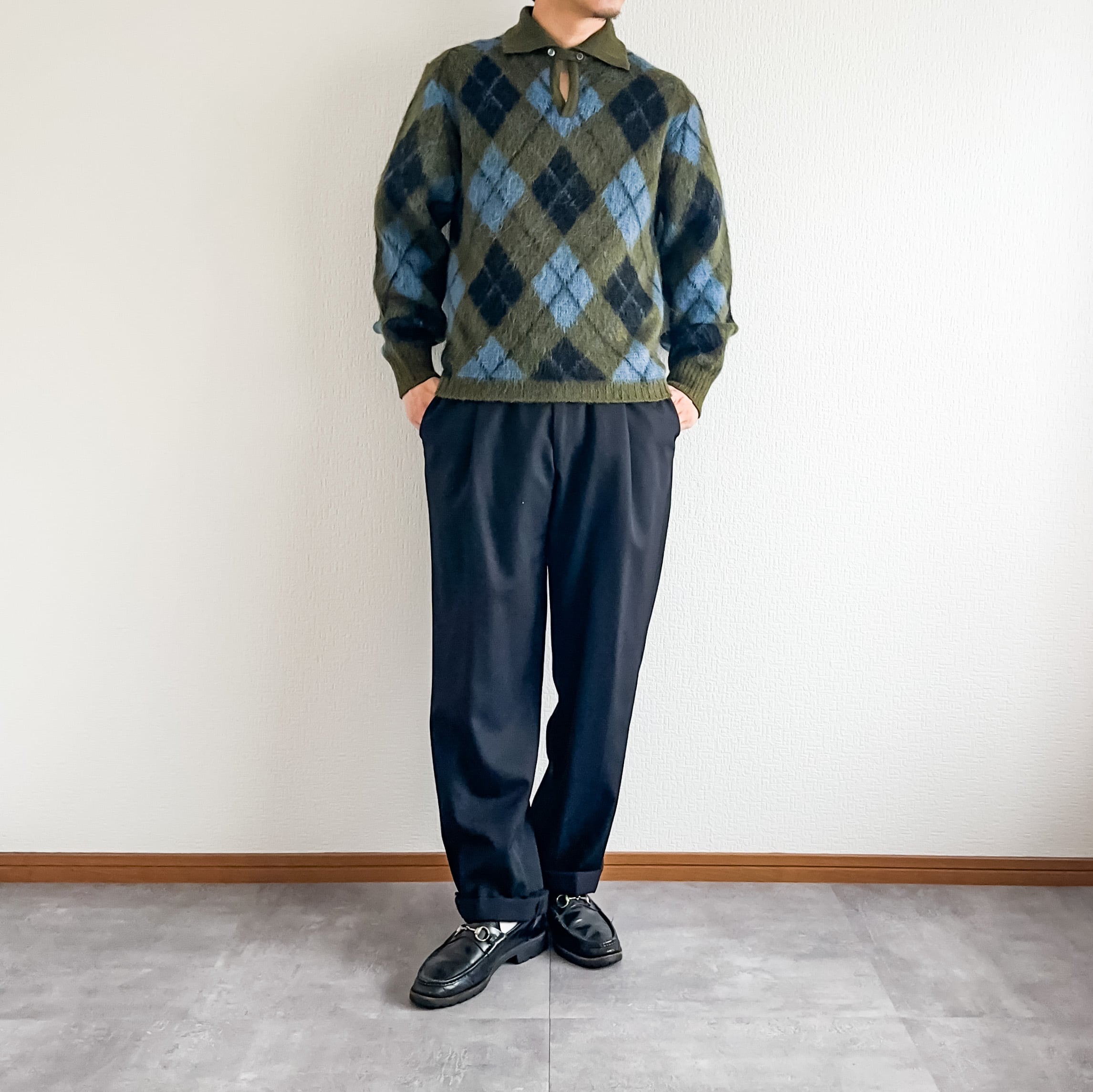 グリーン×ライトブルー×ブラックの配色の素晴らしいアーガイル柄も最高ですね。
