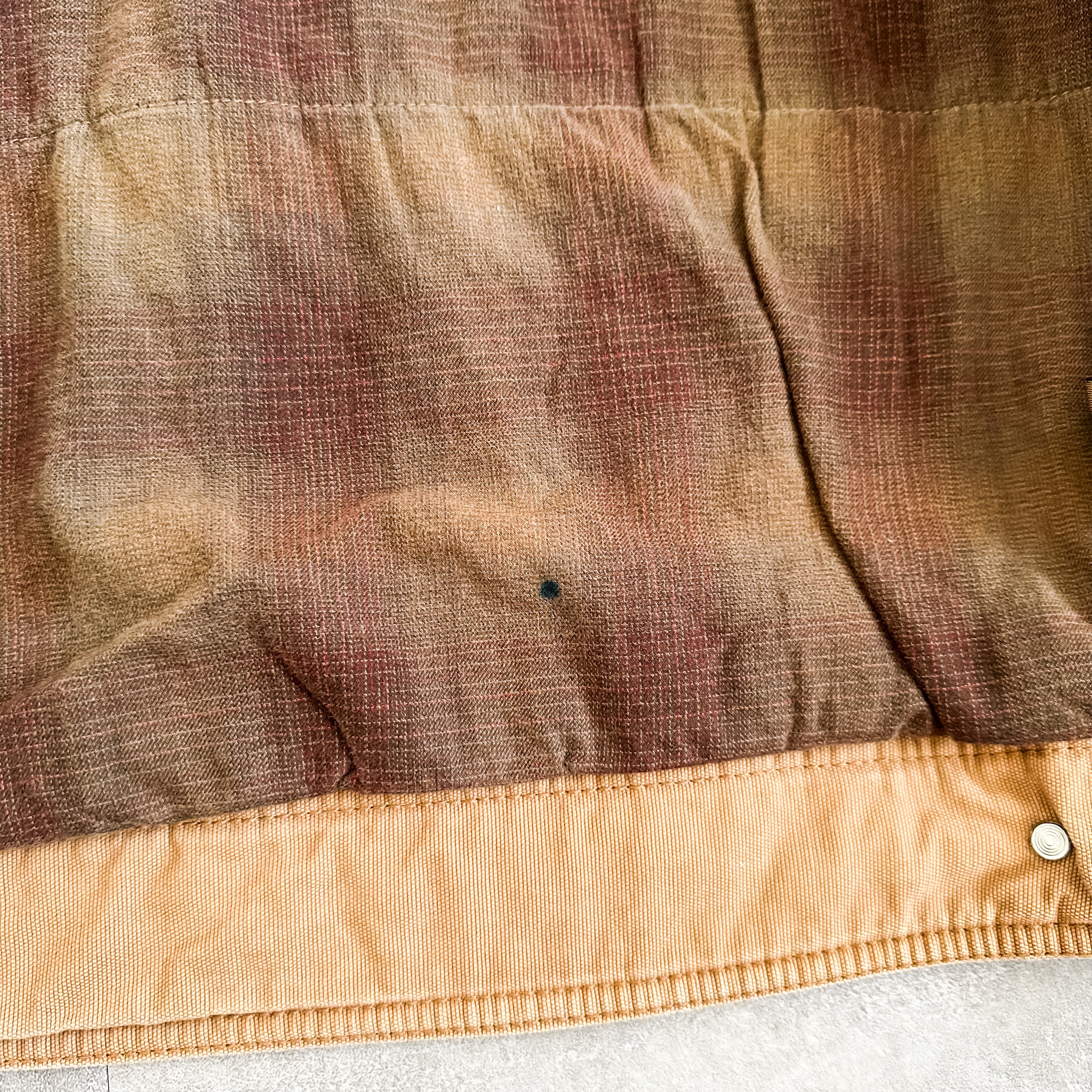 内側には素晴らしい配色のオンブレのフランネルライナー。