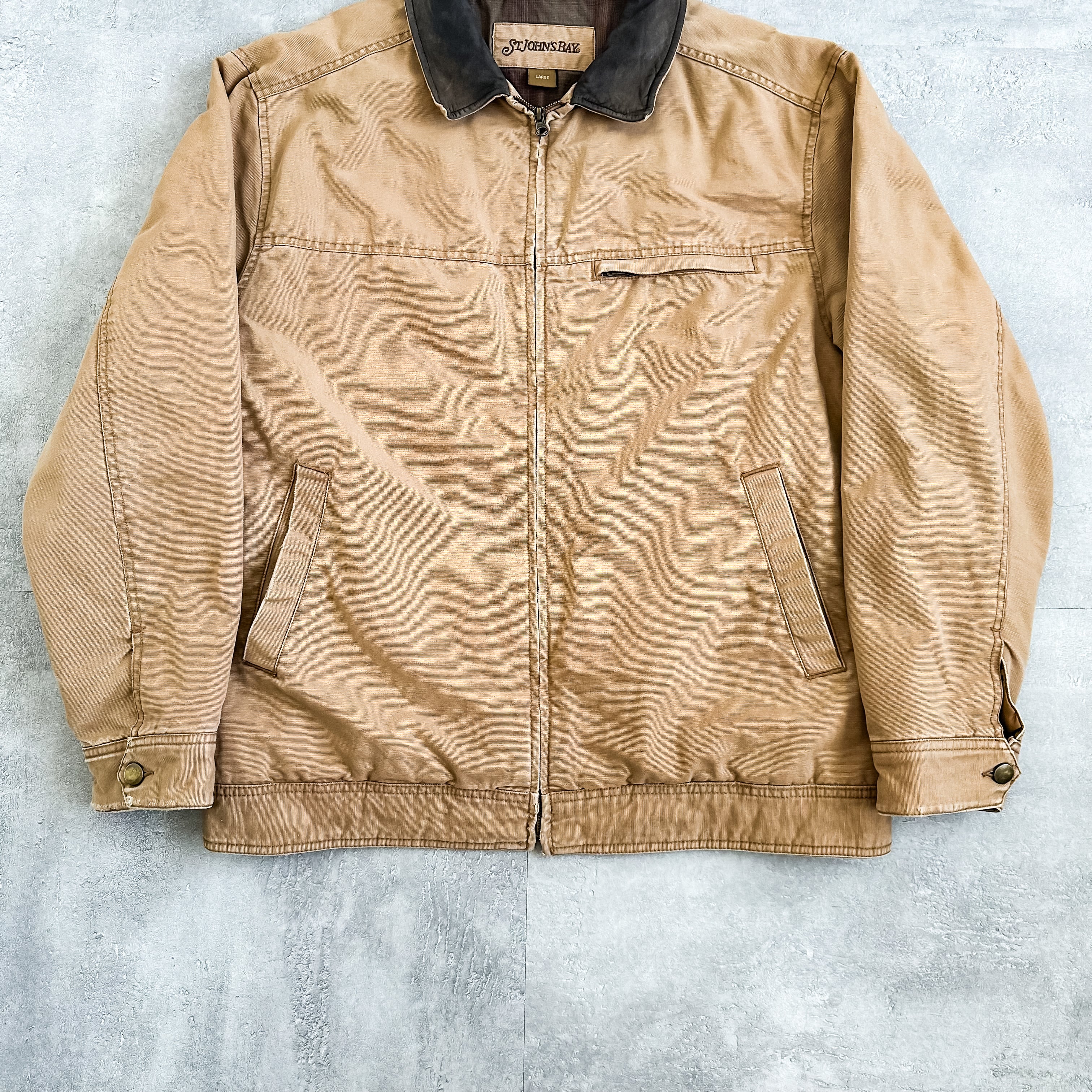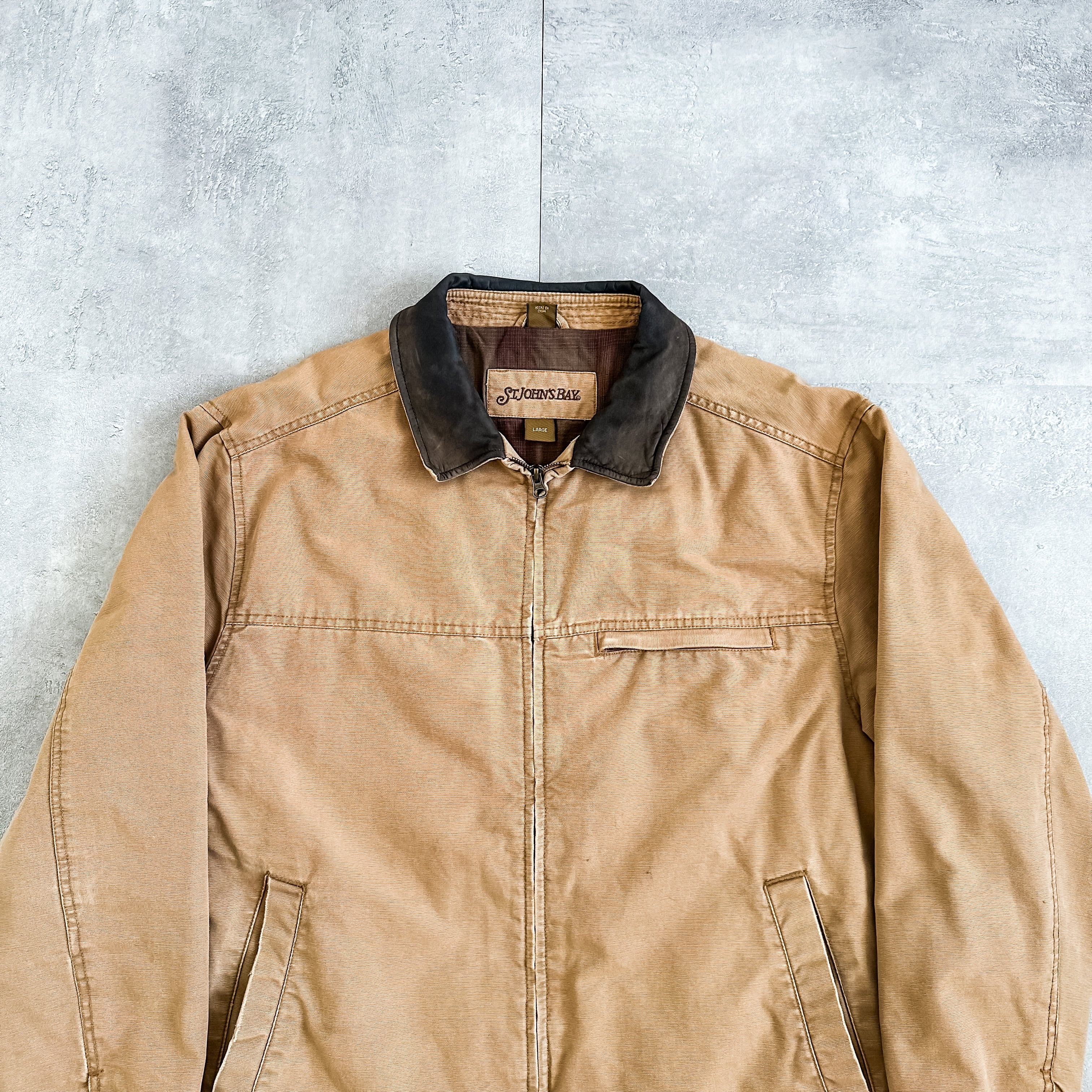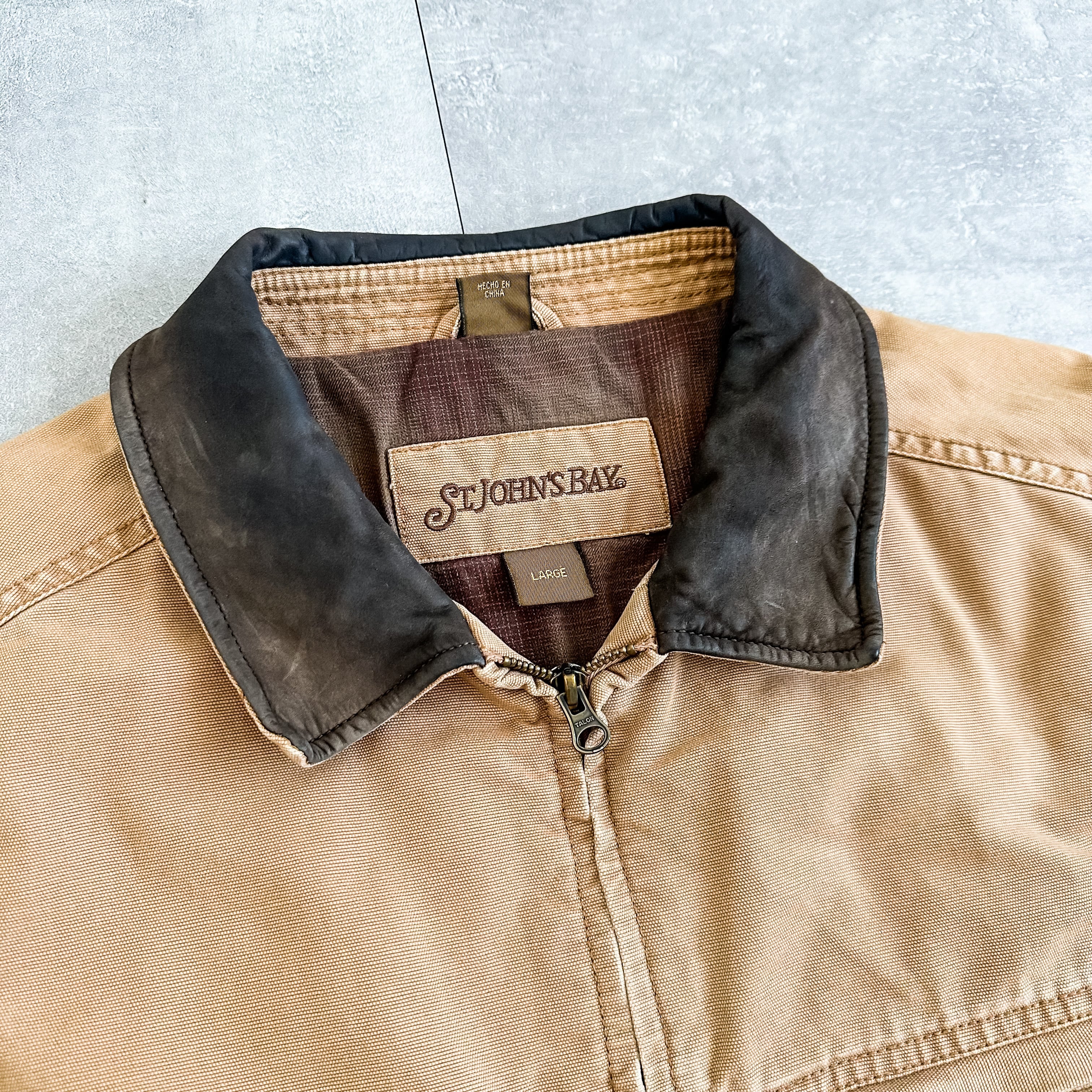 1990's "ST JOHN'S BAY" leather collar detroit type duck jacket
