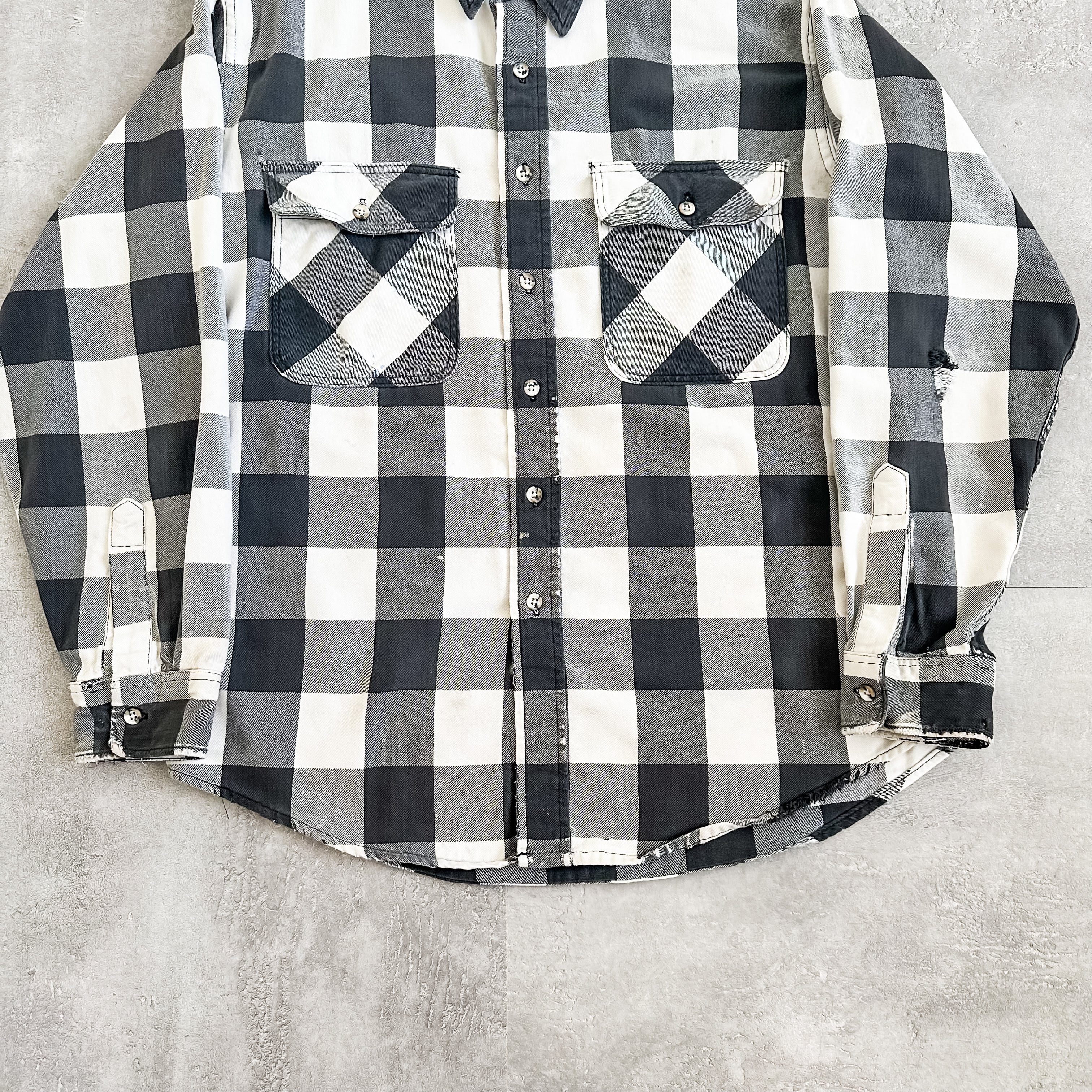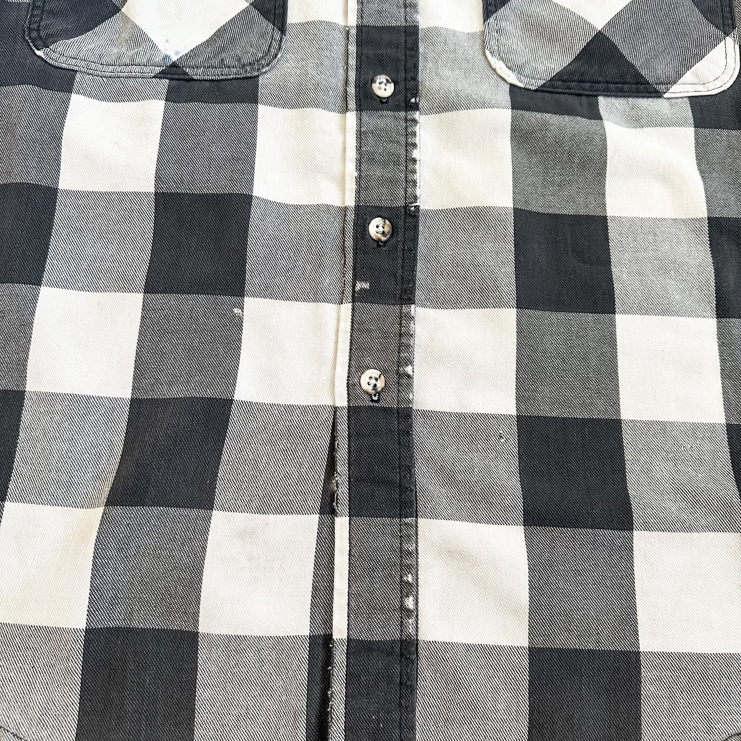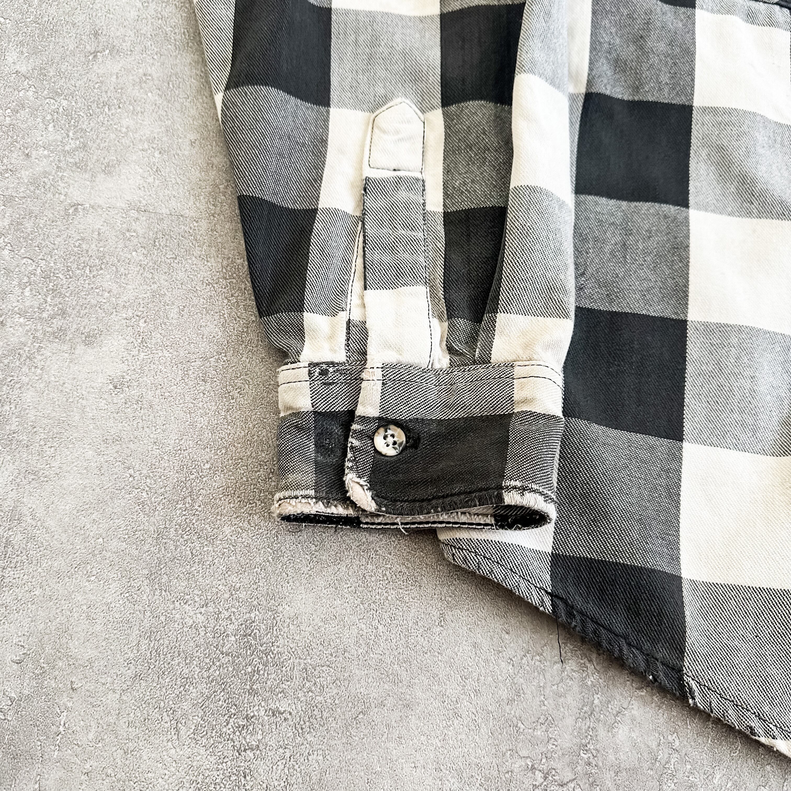 厚みのあるコットンのヘビーネル素材に、モノトーンカラーのブロックチェック柄がクールな一枚です。