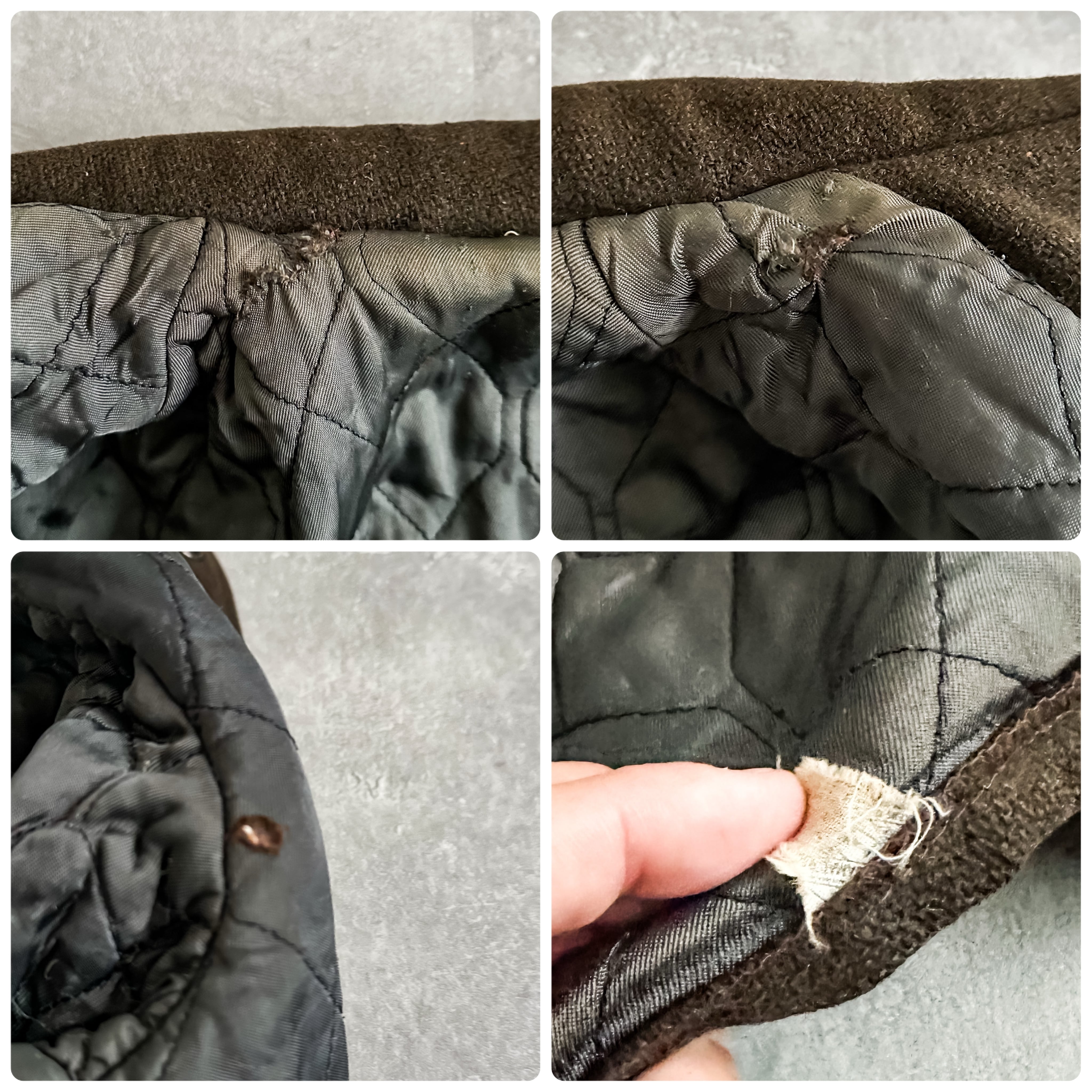 ※※古着故の多少の着用感や画像のように所々虫食い(穴はなし)、画像9.10枚目のような小さなリペアや裏地にダメージ、リペア(画像14枚目)、所々ステッチ抜けがございます。古着に理解のない方のご購入はお控えください。