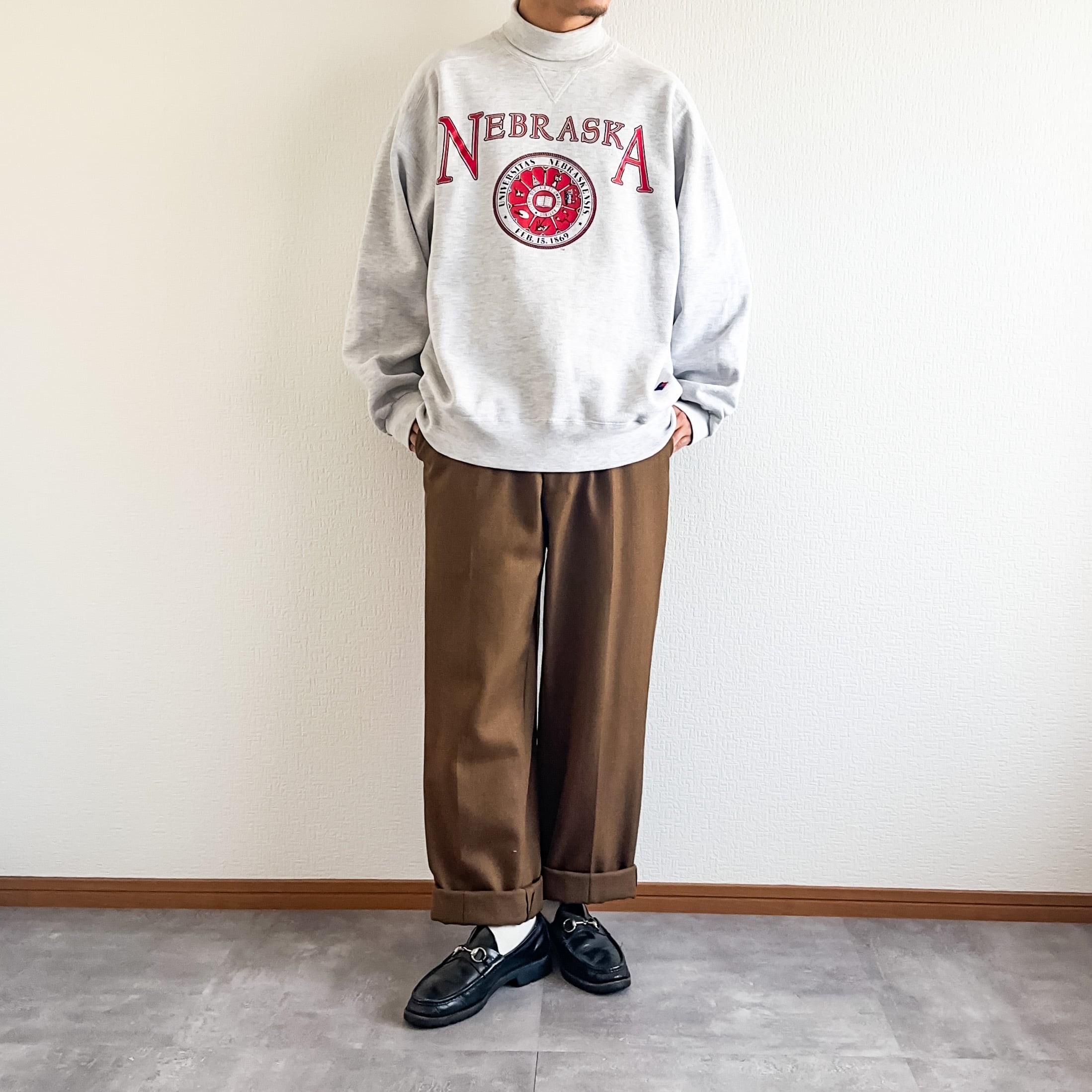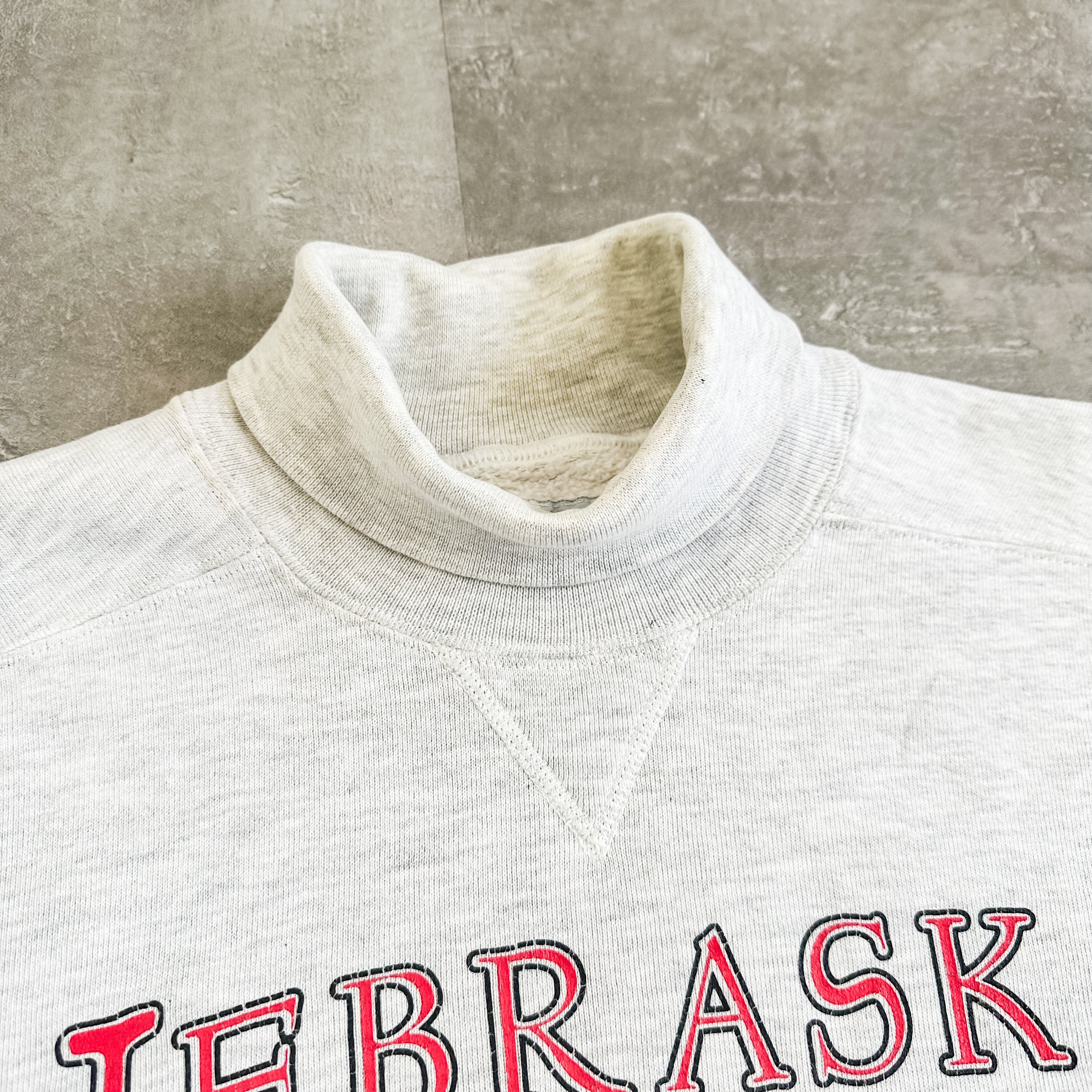1990's "Russel" "NEBRASKA" college turtleneck high cotton sweat made in USA