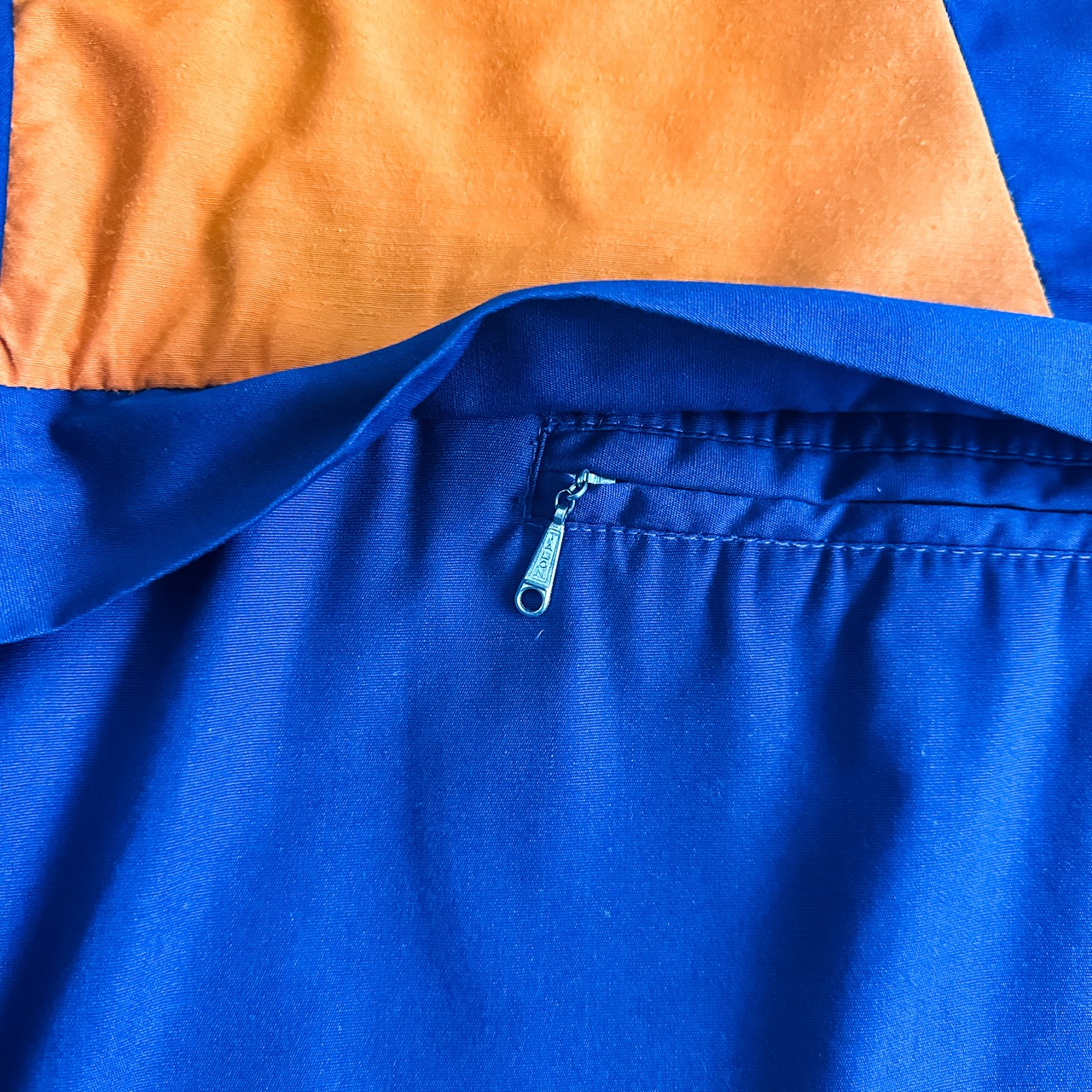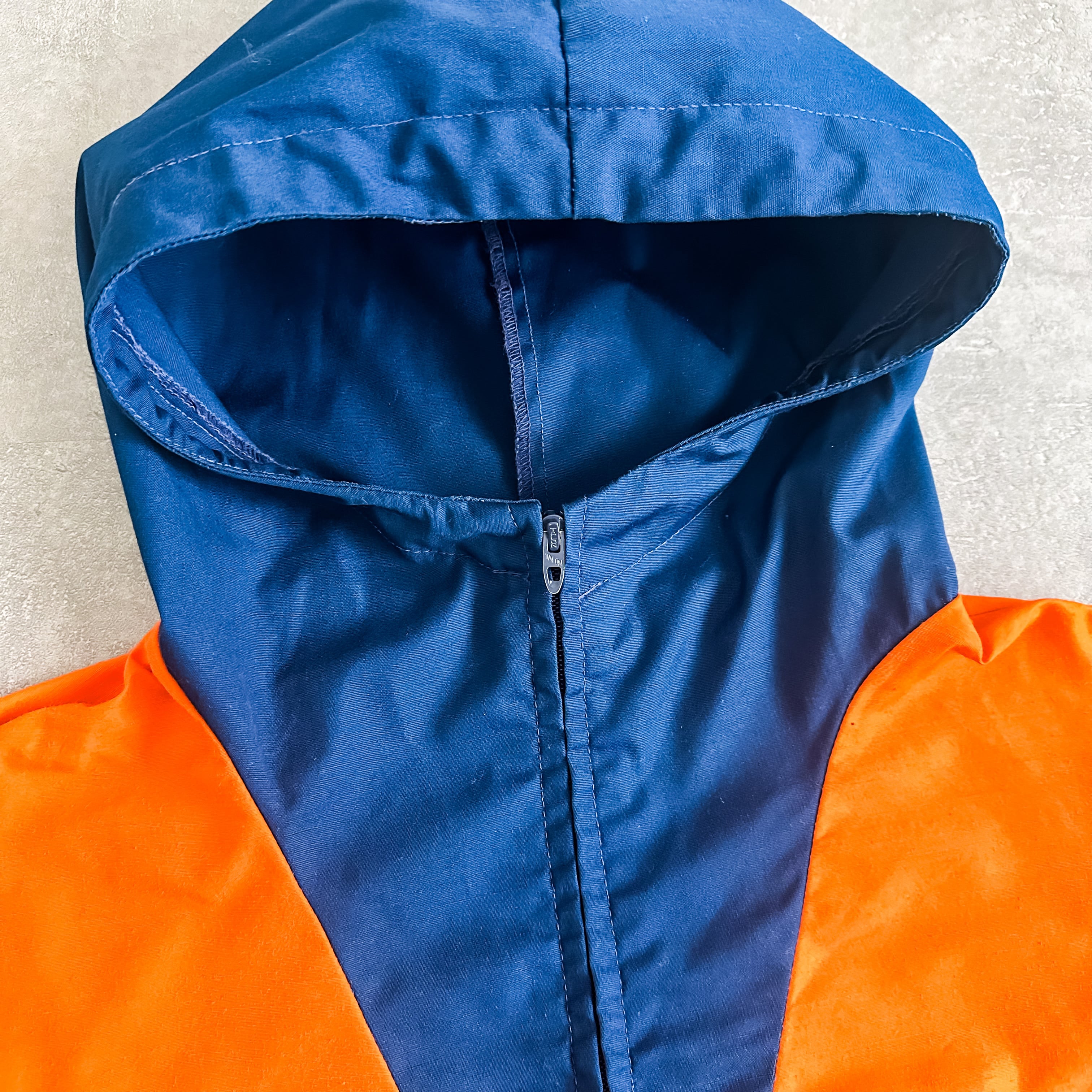 ハーフジップのプルーオーバーに、ネイビー×オレンジの大胆な切り替えのデザインが◎