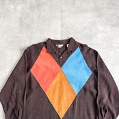 素材はとろみのあるレーヨン×アセテートのミックスファブリックで、フロントにはダイヤ状の3色のコーデュロイで切り替えられたアート感のある初見のスペシャルなデザイン。