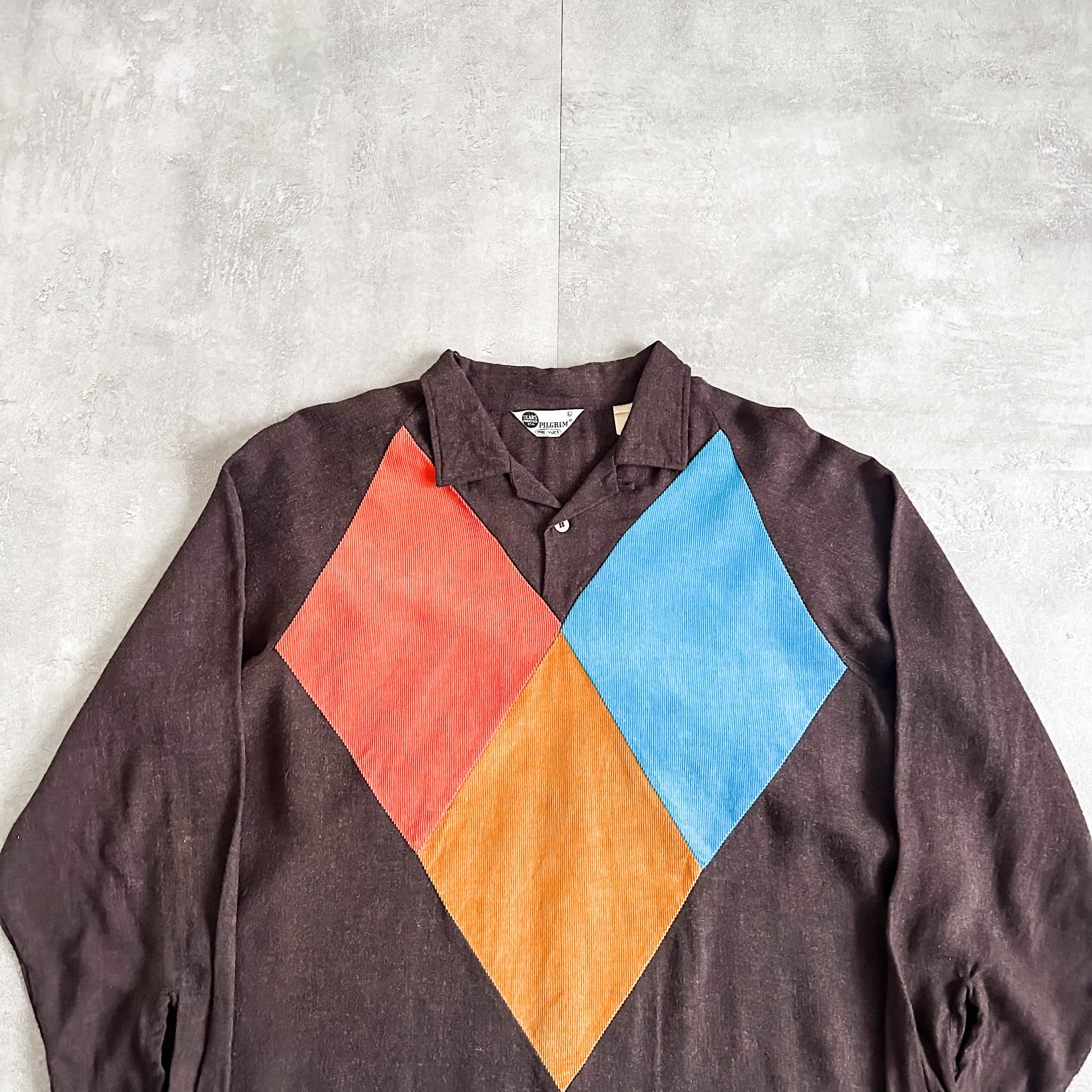 Vintage 1960's "PILGRIM" corduroy switching design rayon×acetate pullover open collar shirt