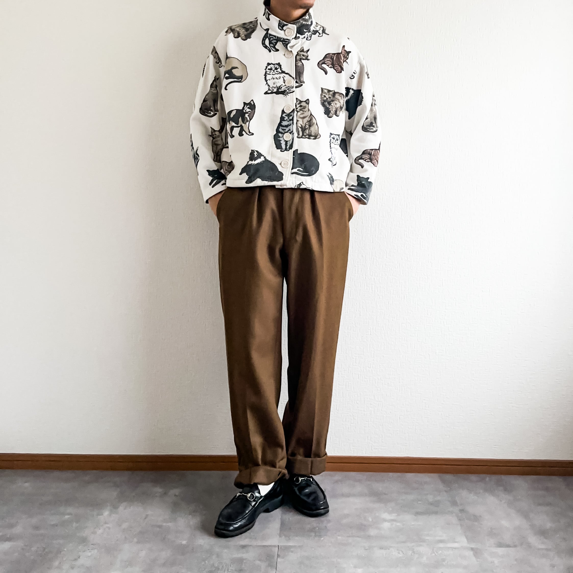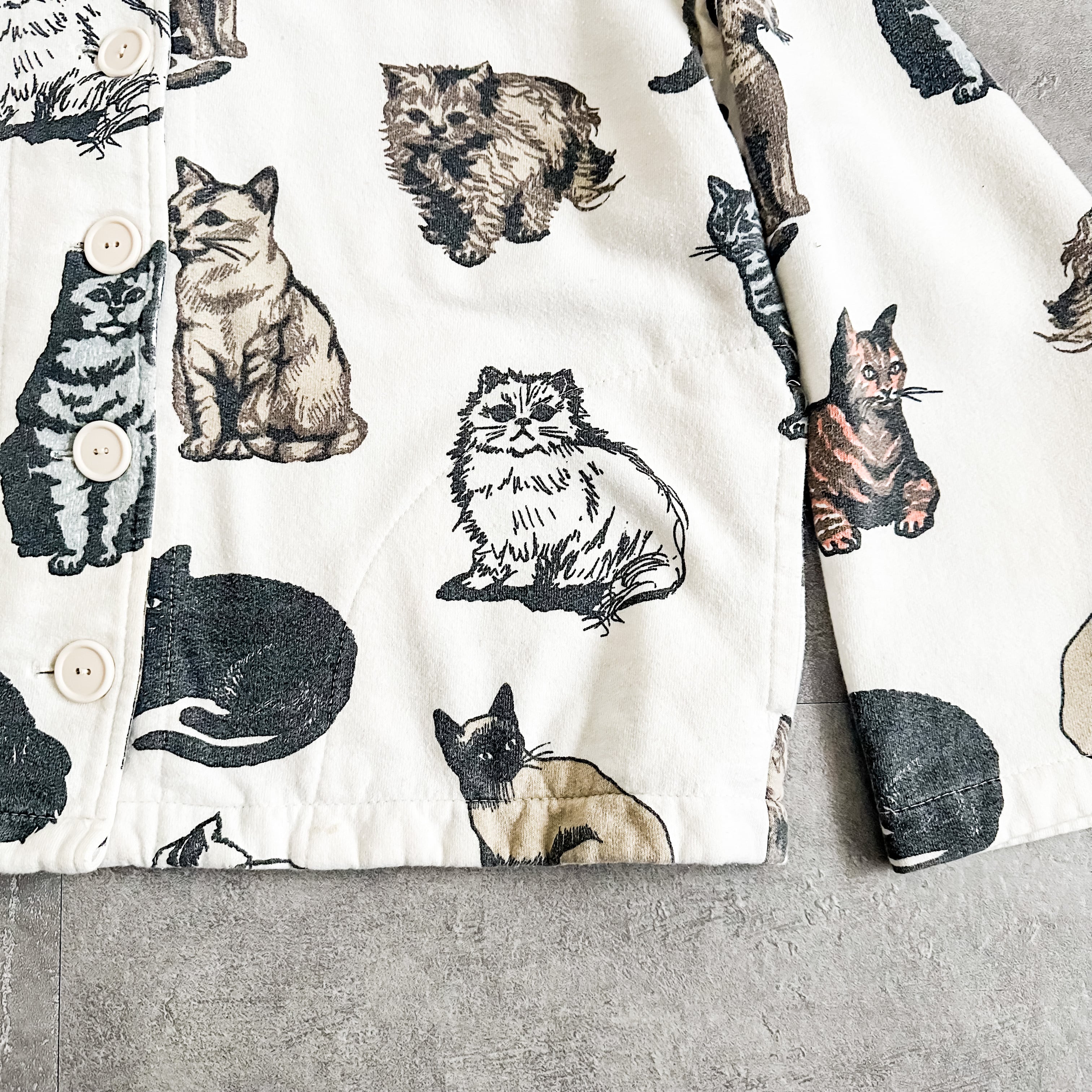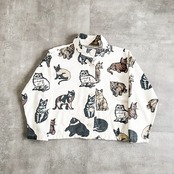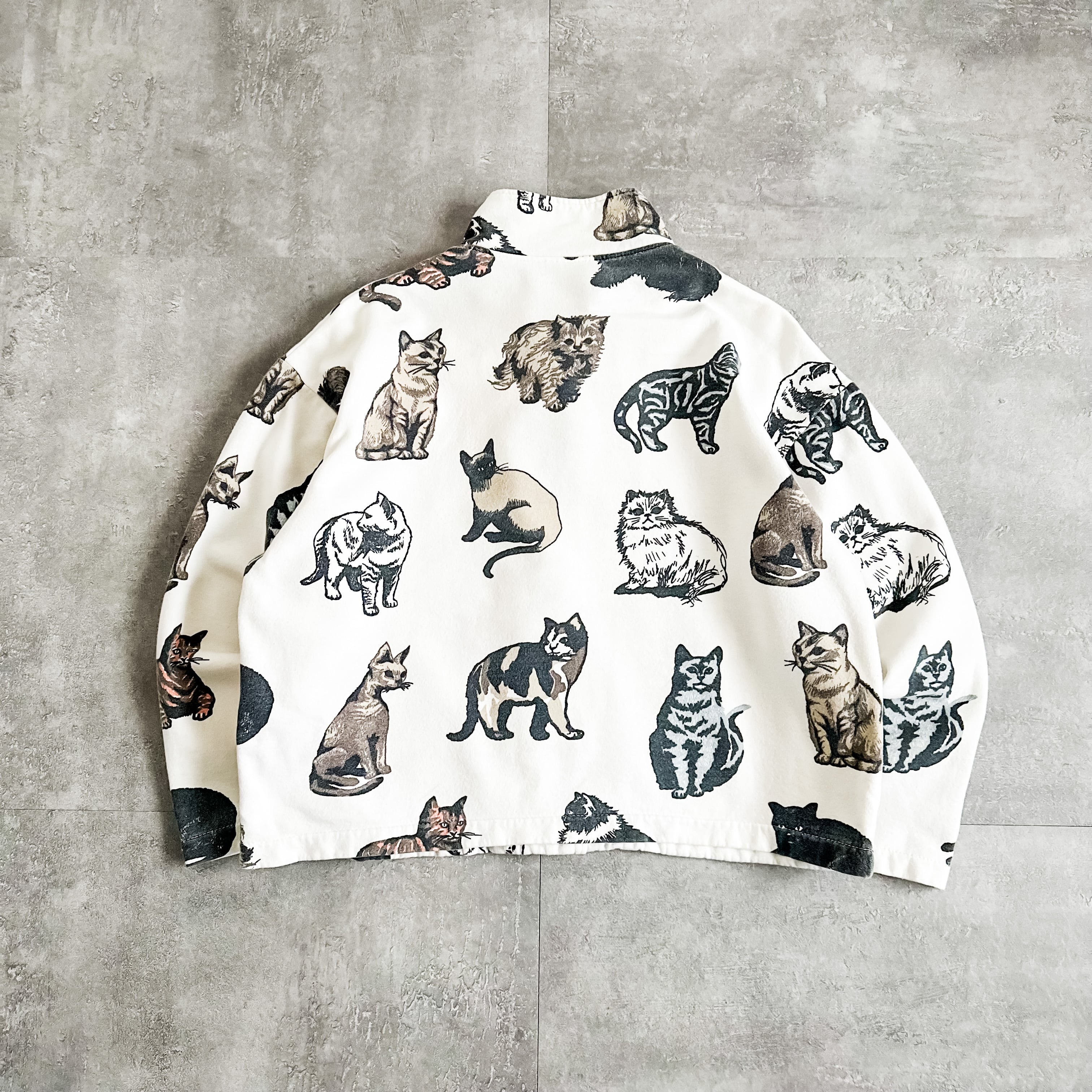 1990's "MICHIGAN RAG CO." highneck cat pattern cotton sweat jacket